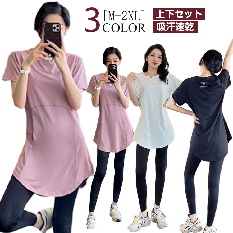 おしゃれ スパッツ ピラティス tシャ スポーツ アウトドア 特集 ブラック ホワイト ピンク M L XL 2XL