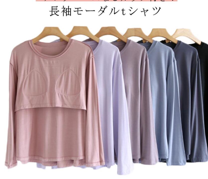 ブラカップ パット付 ラウンドネック インナー 下着 ナイトウエア 続々登場 ピンク ブルー グレー ダークパープル ライトパープル ブラック M L XL 2XL