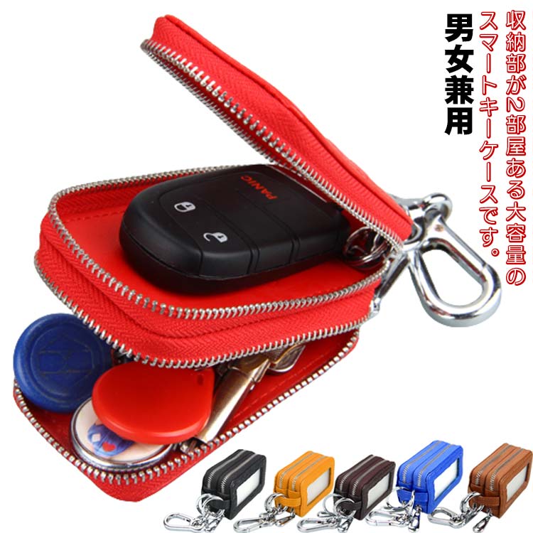 2個 ファスナー キーケース スマート ブラック イエロー コーヒー ブルー ブラウン レッド