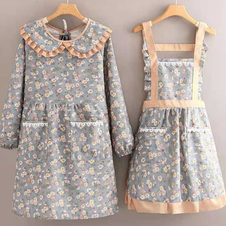 割烹着 おしゃれ かっぽう着 かわいい 配膳用品 キッチンファブリック エプロン 三角巾 割烹着 スモック 超目玉商品 ブルー ピンク グリーン 2枚セットタイプ1 2枚セットタイプ2