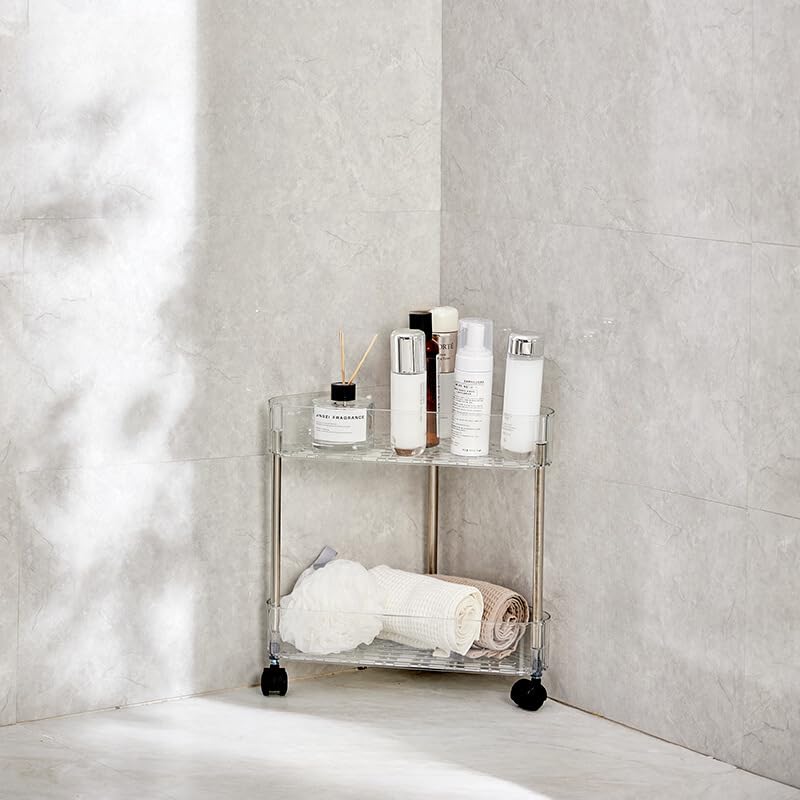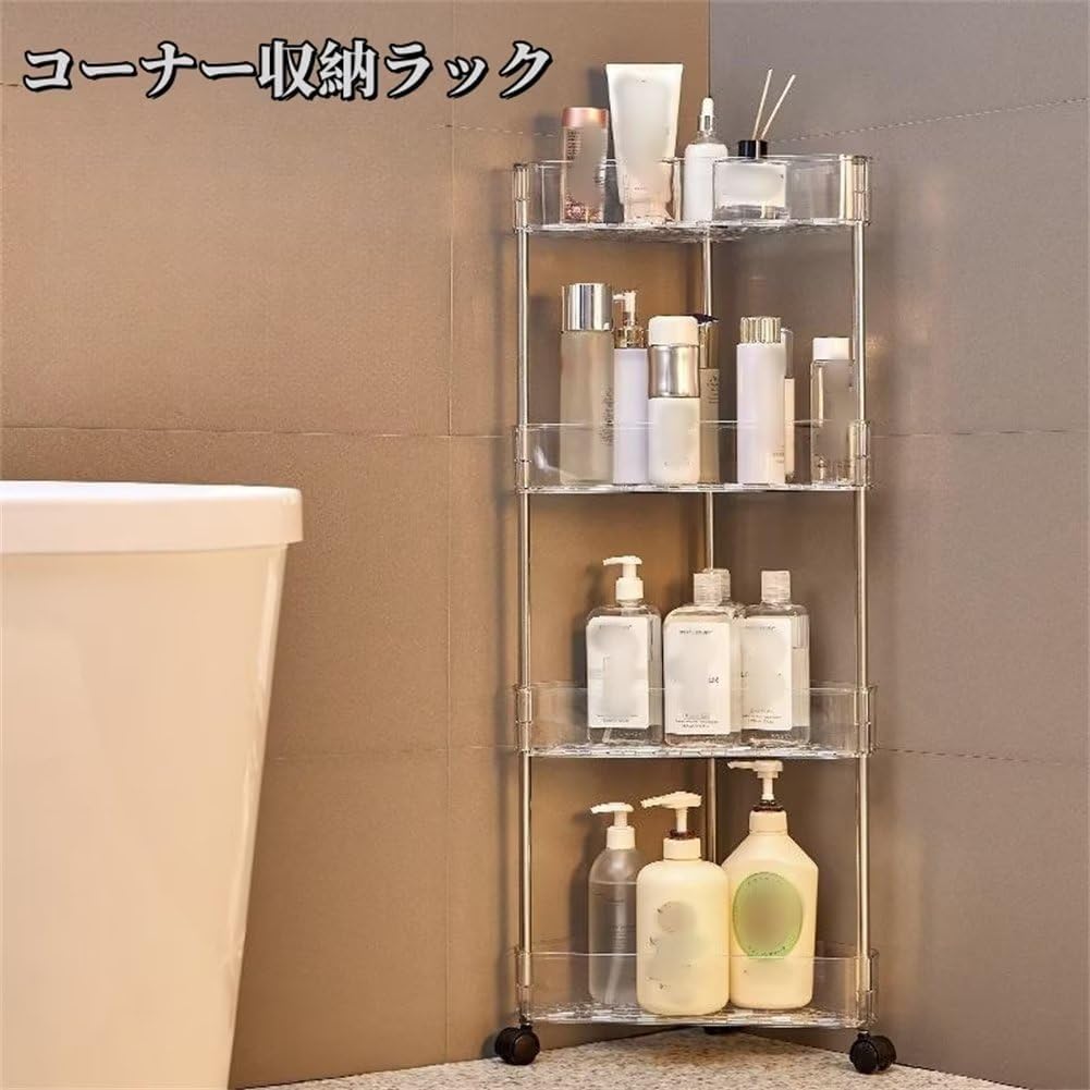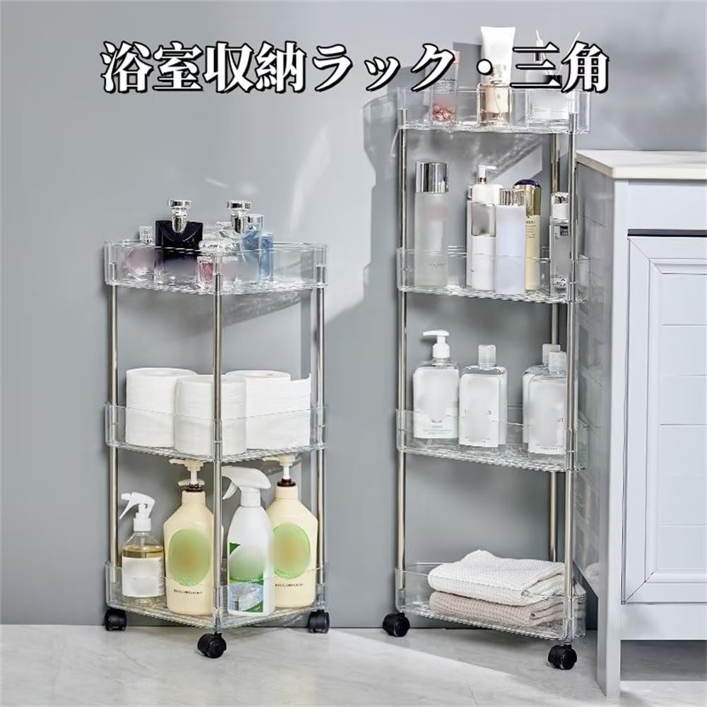 コーナー収納ラック キャスター付き 三角棚 収納カート コーナーシェルフ 三角 扇形 浴室収納ラック コーナーラック シャワーラック 水切り 錆なし オープン 大容量 隙間収納 お風呂 浴 省スペース