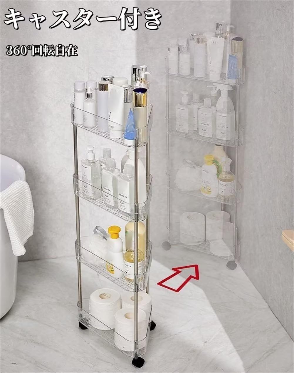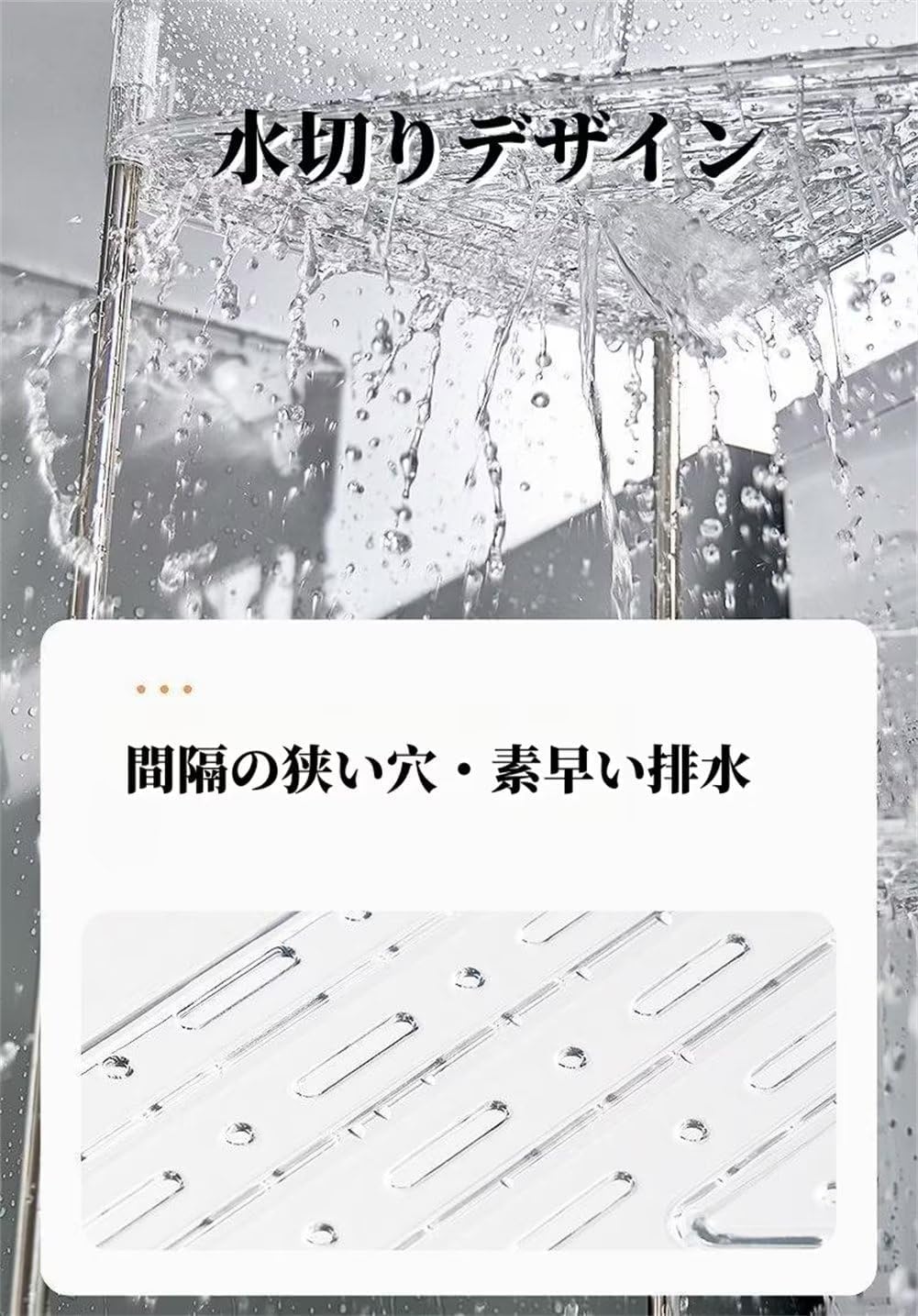 【適用範囲】浴室ラック、キッチンラック、収納ラック、バスラックとして、お風呂場、洗面所、お手洗いなど様々な場所に相応しいです。綺麗に整頓やスッキリ収納に、この多用途ラックは最適です。透明色でおしゃれです。どこにおいてもインテリアに似合います。