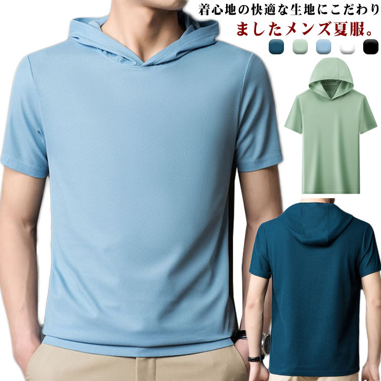 Tシャツ メンズ 半袖パーカー 夏物 トップス パーカー 続々登場 ブラック ホワイト ライトブルー グリーン ブルー M L XL 2XL 3XL 4XL