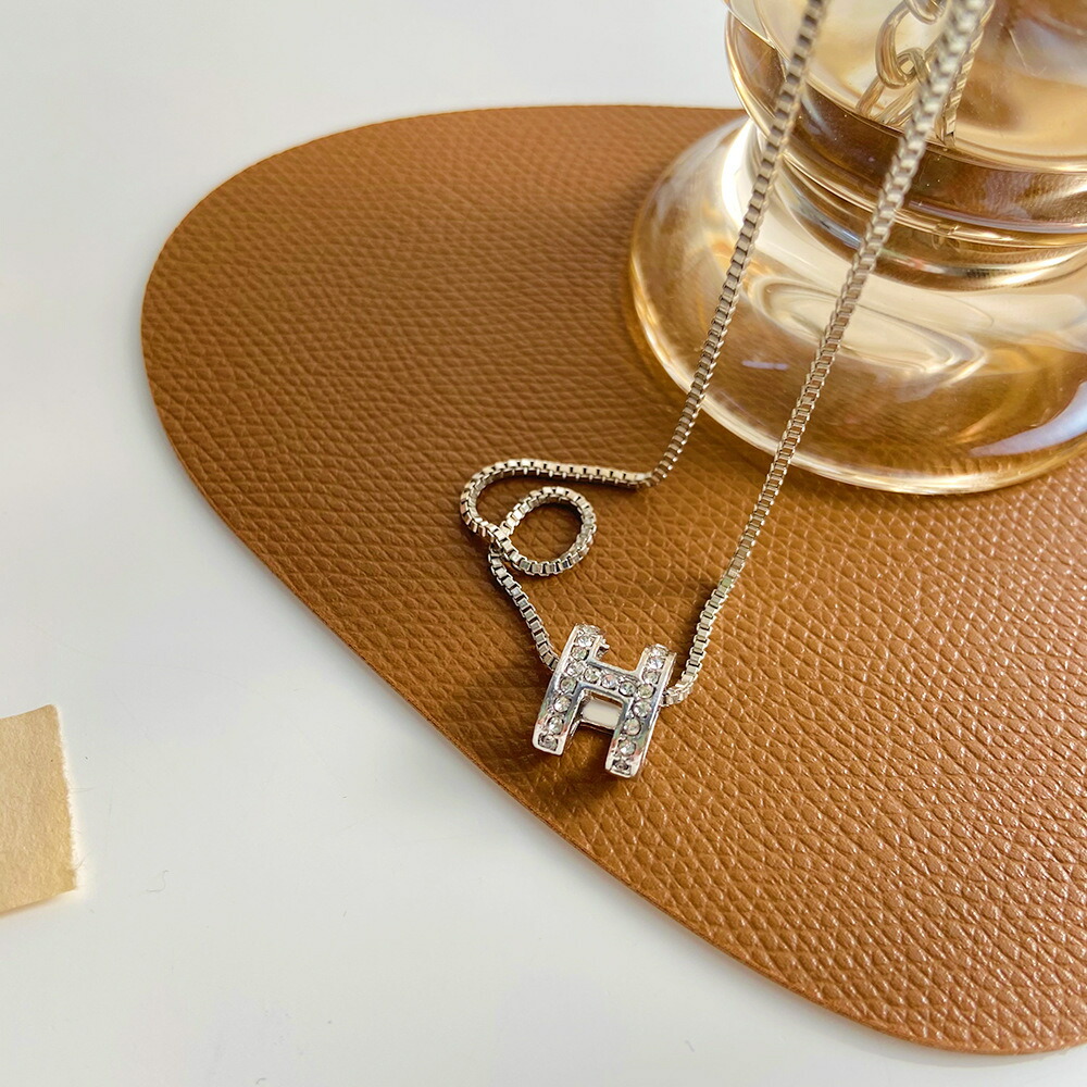 女性用ダイヤモンドHペンダントネックレス ファッショナブルでシンプルなメタル幾何学鎖骨チェーンネットレッドネックレス