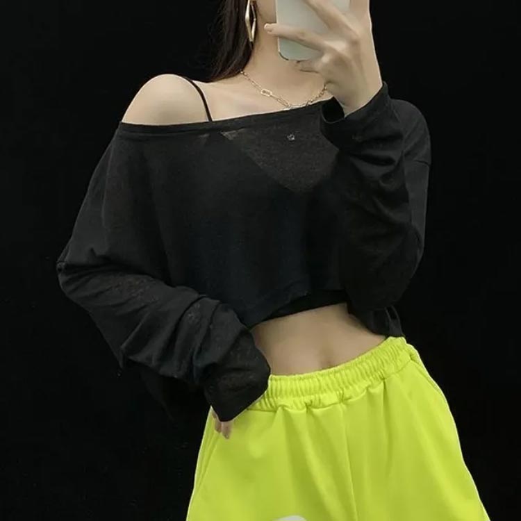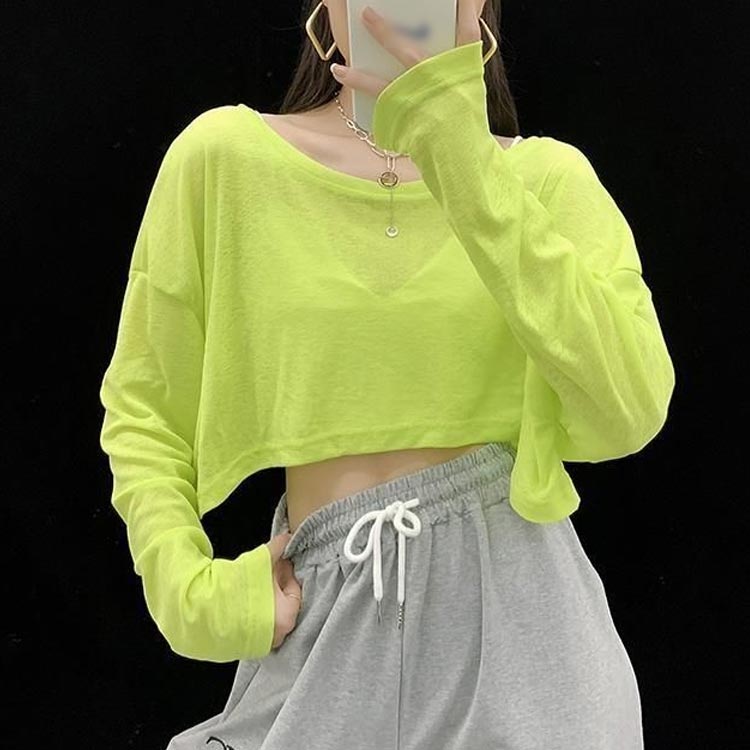 tシャツ 長袖 ショート丈 春夏 長袖 レディースファッション 人気 ホワイト ブラック ブルー 蛍光グリーン M(42.5-50KG) L(50-57.5KG) XL(57.5-62.5KG) 2XL(62.5-67.5KG)