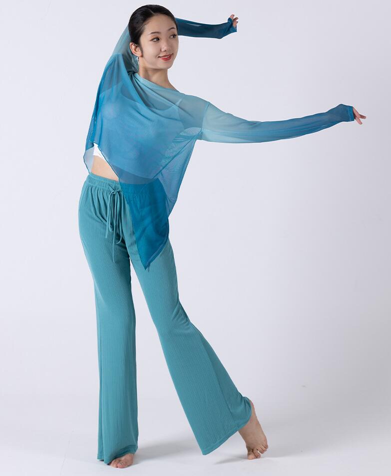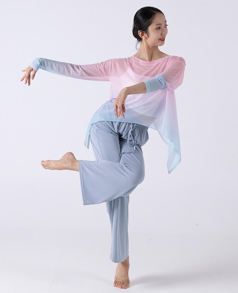古典ダンスウェア 透け感長袖ブラウス トップス/ピンク(2180円) トップス/パープル(2180円) トップス/青(2180円) S M L