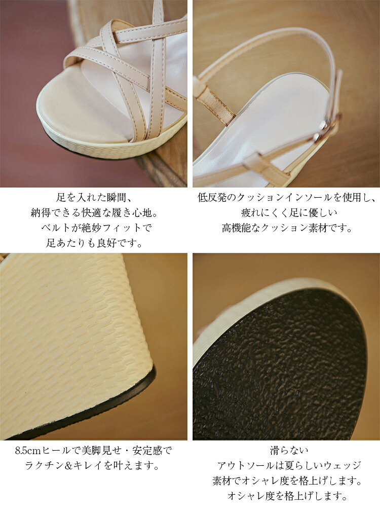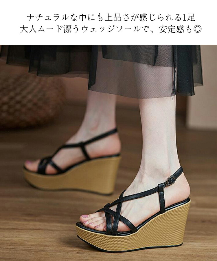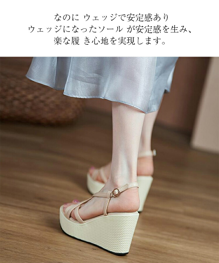 ウェッジソール サンダル レディース スーツ セットアップ パンツスーツ 通販 ラインベージュ ダークベージュ ブラック 22.5cm 23cm 23.5cm 24cm 24.5cm 25cm 25.5cm
