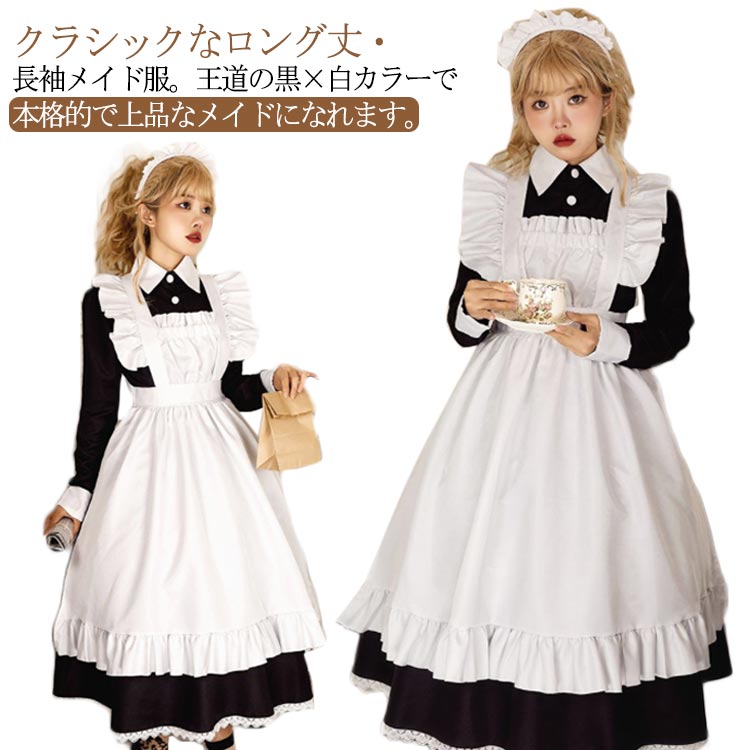 メイド服 エプロン 長袖 クラシック ホビー 通販 S M L XL 2XL 3XL