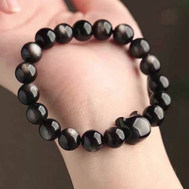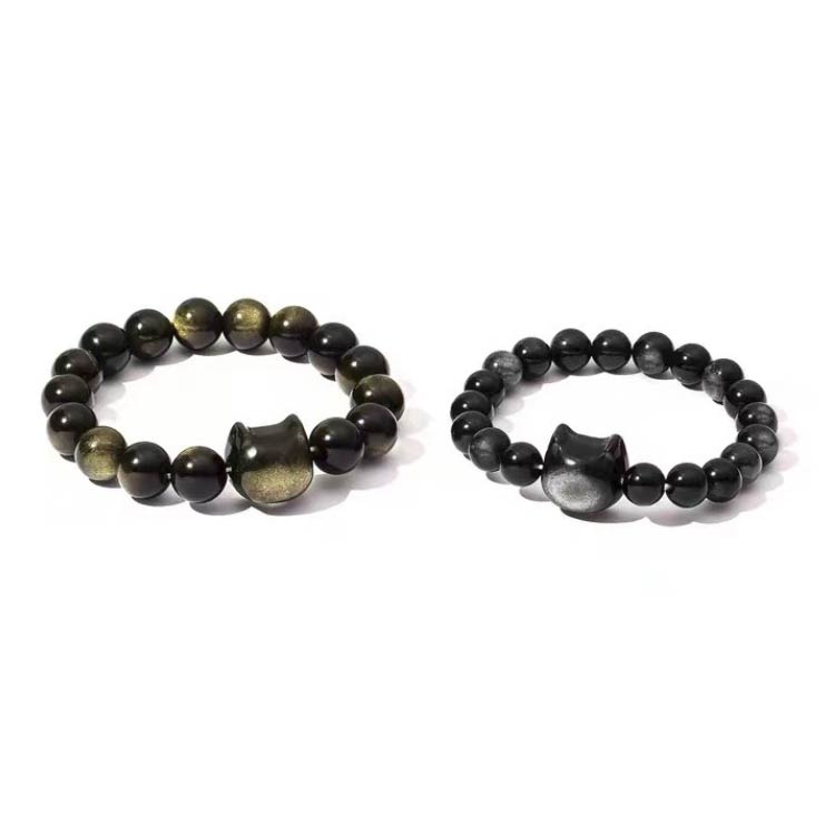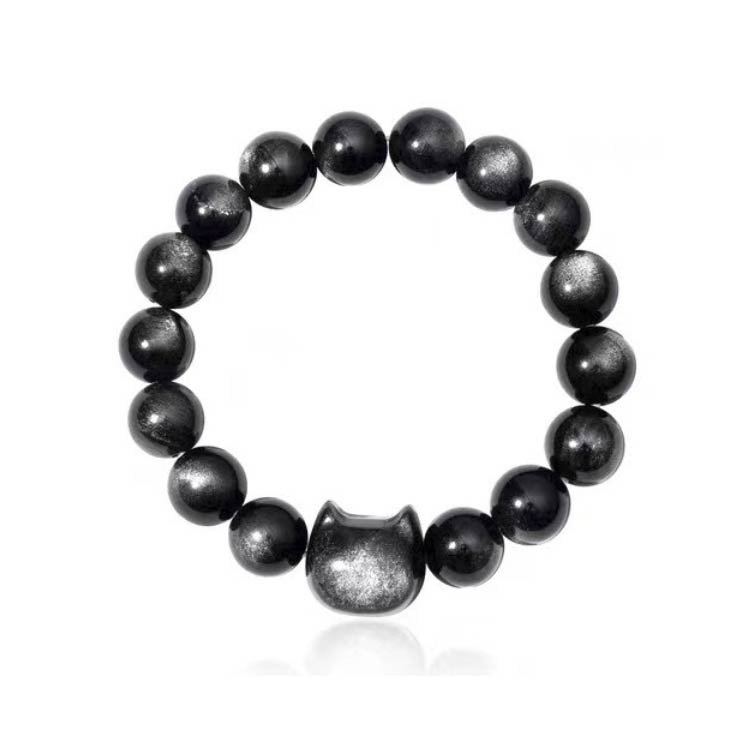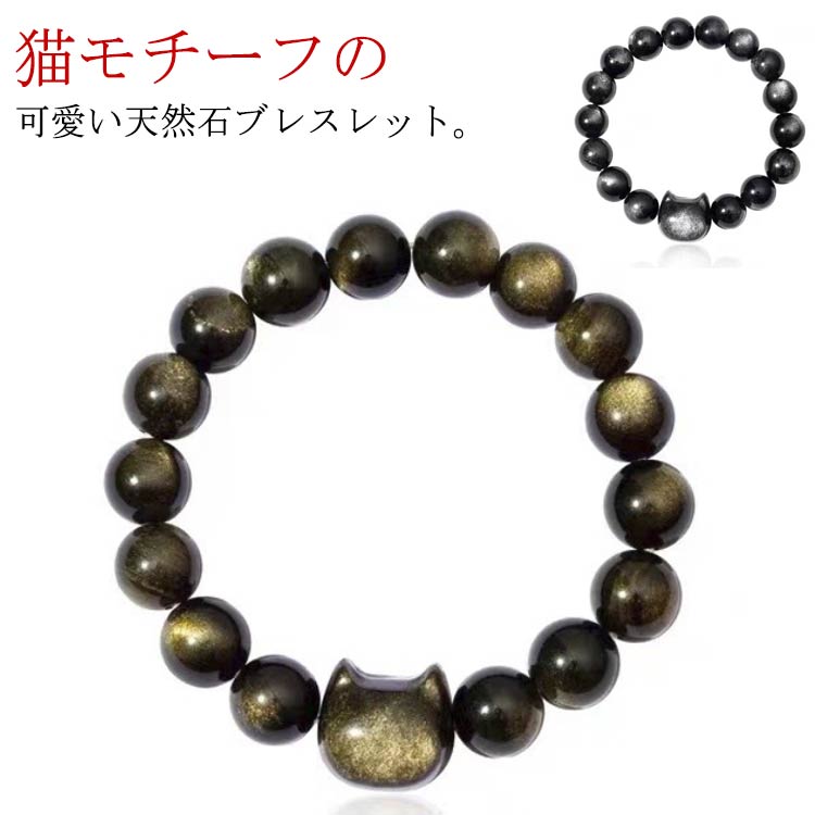 猫ブレスレット 天然石ブレスレット ゴ ジュエリー アクセサリー 豊富な品揃え 金曜石 銀曜石 8mm 10mm 12mm