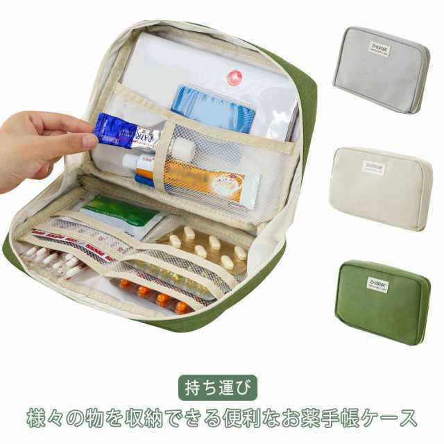 薬ケース トラベルポーチ 収納ポーチ 旅行用品 トラベルポーチ パッキングオーガナイザー 通販 グリーン グレー ベージュ