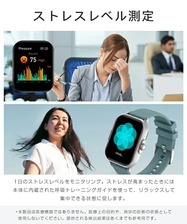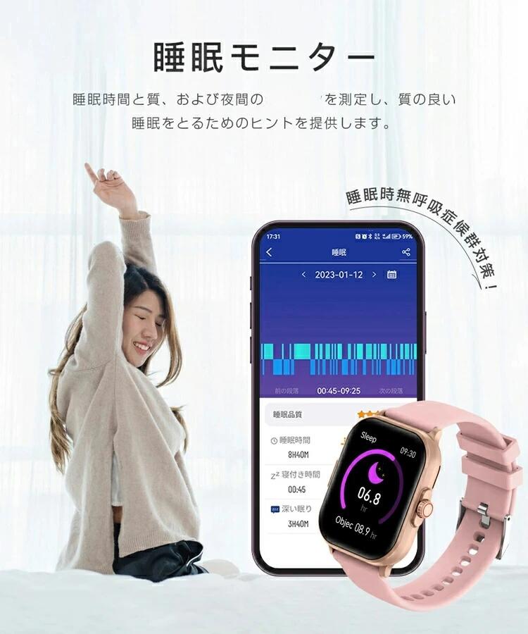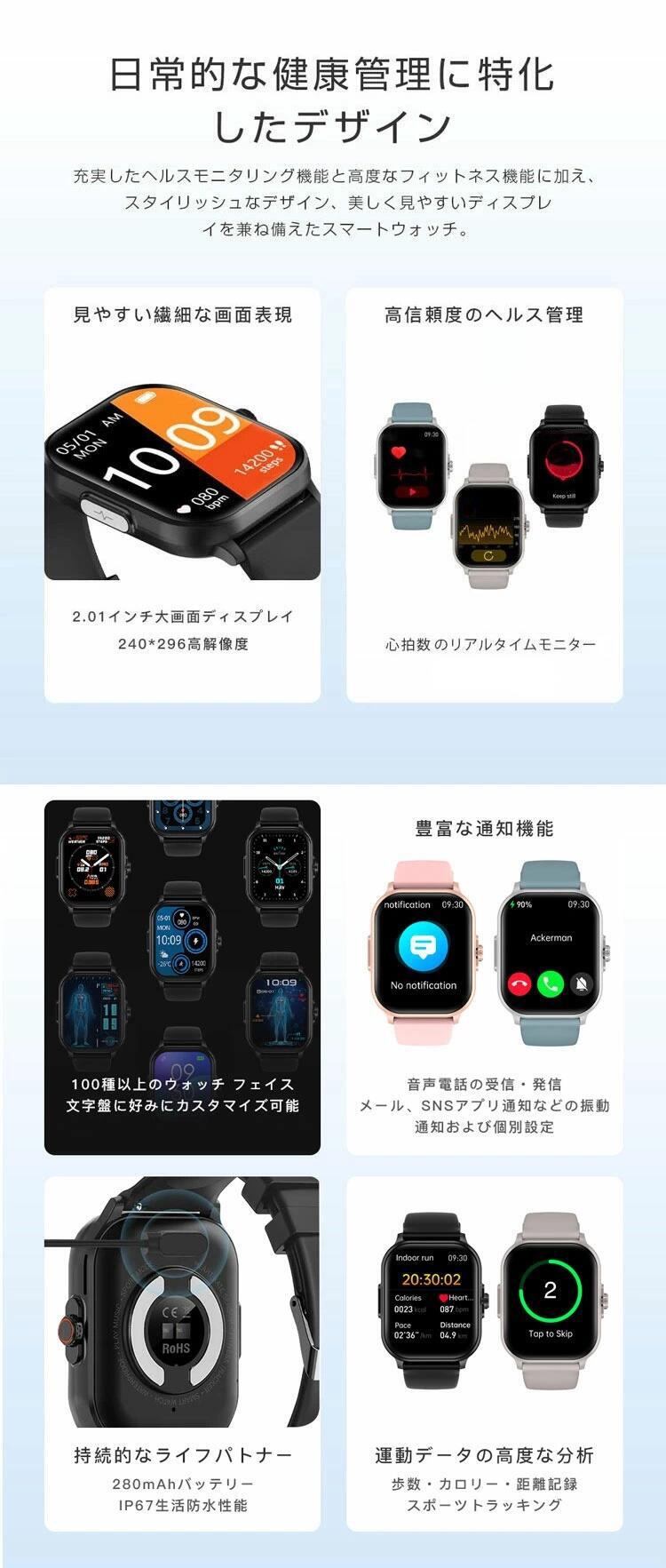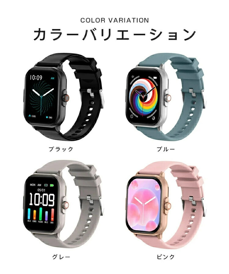 スマートウォッチ レディース メンズ ブラック グレー ピンク ブルー