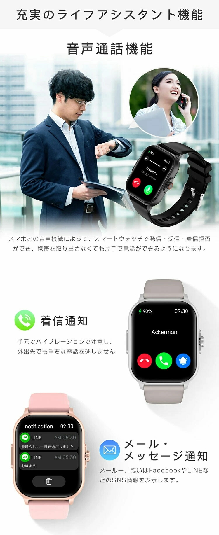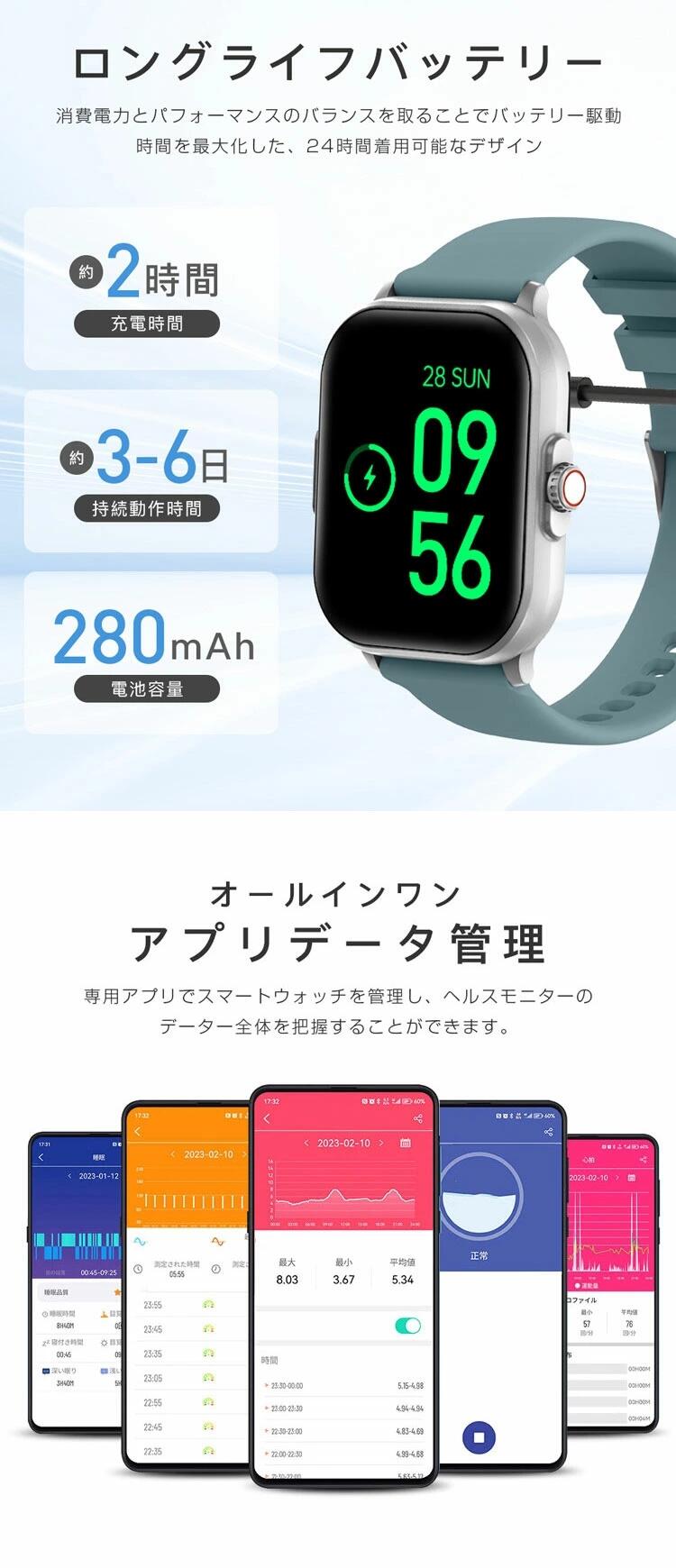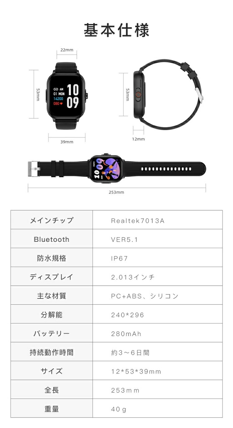 スマートウォッチ レディース メンズ ブラック グレー ピンク ブルー