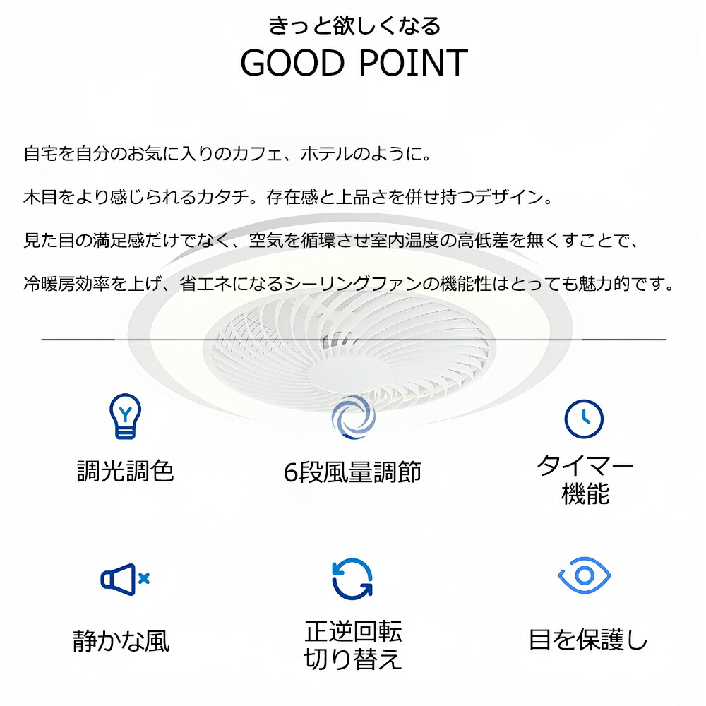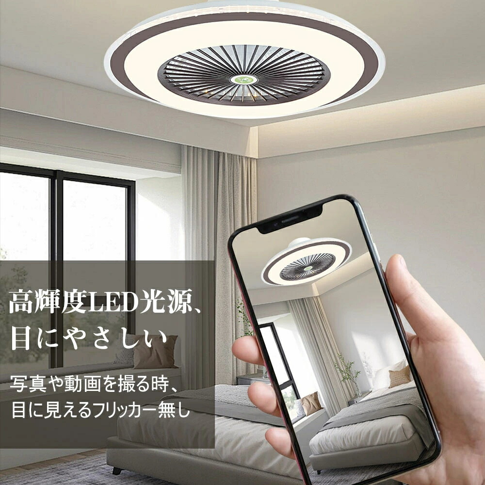 シーリングファンライト led ファン ホワイト ゴールド ブルー ベーシック ルーバー回転+スマホAPP操作機能