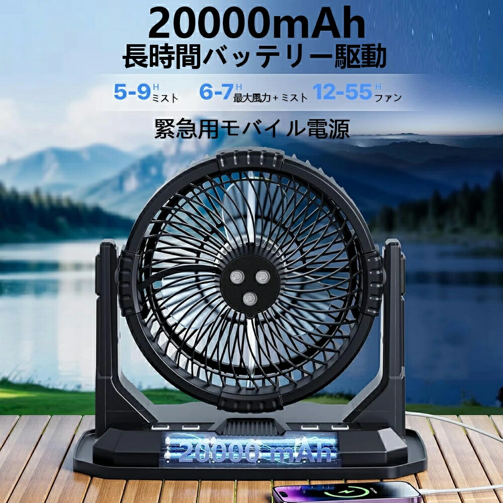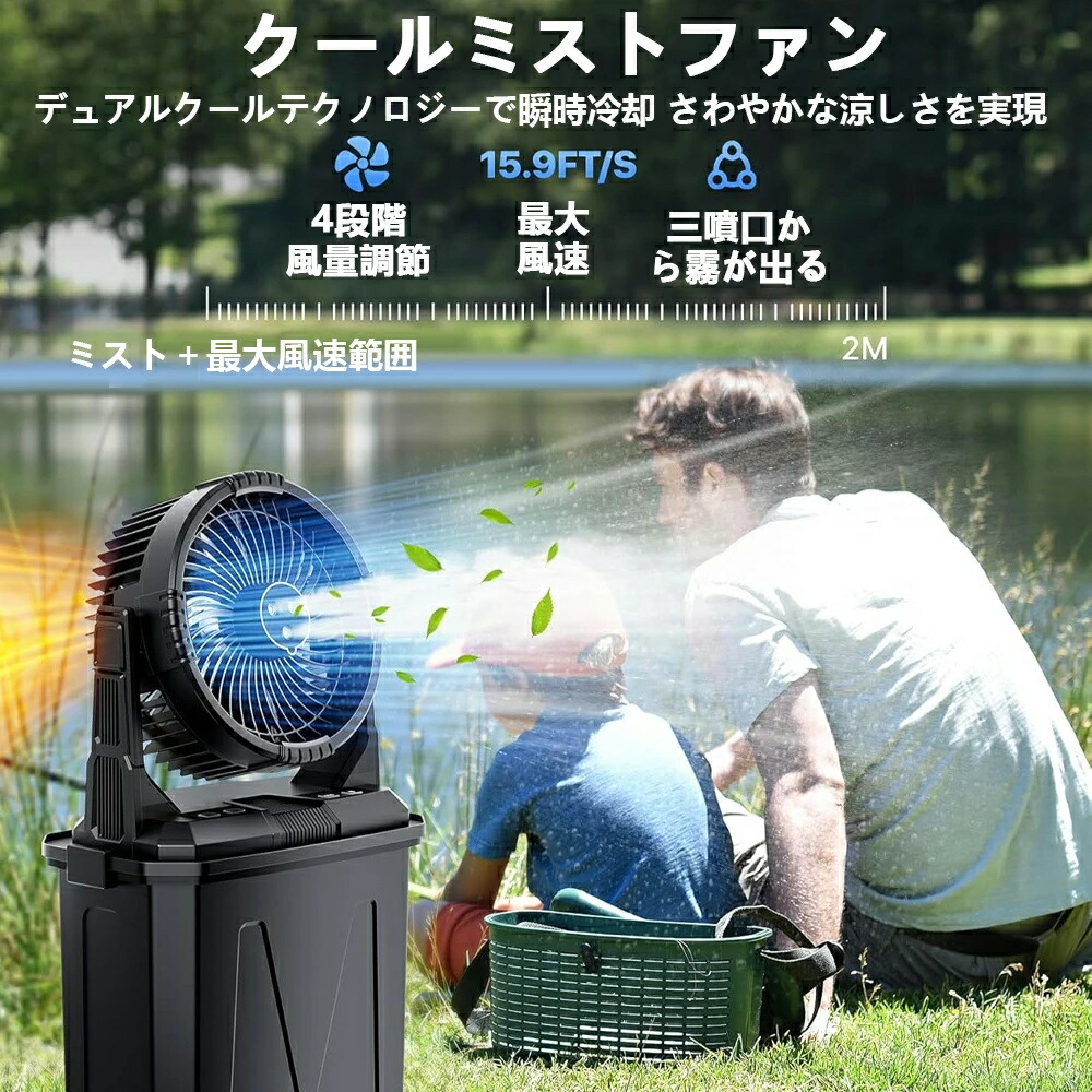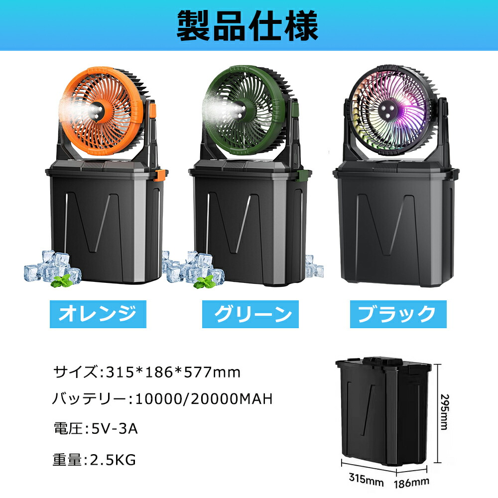 キャンプ扇風機 ミスト扇風機 ミストフ オレンジ グリーン ブラック 10L【RGBW雰囲気灯】 6L【首振り+照明】