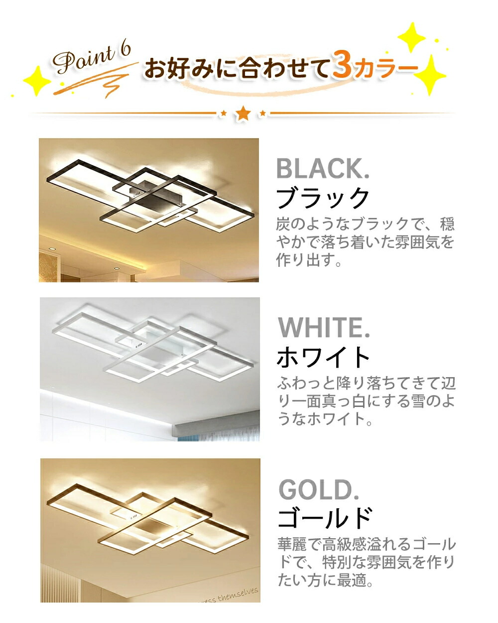 シーリングライト led 調光調色 6 ブラック ホワイト ゴールド 90*50cm 調光調色 105*60cm 調光調色 140*80cm 調光調色