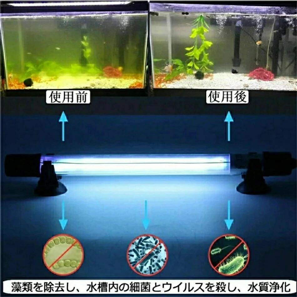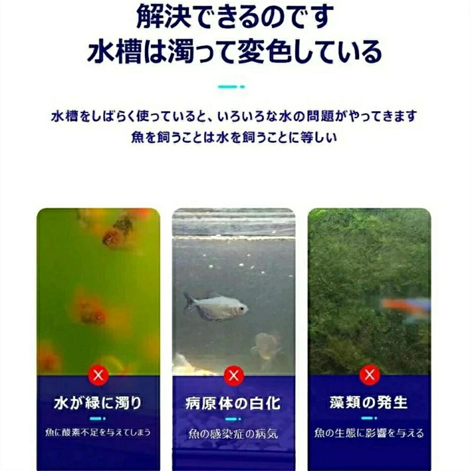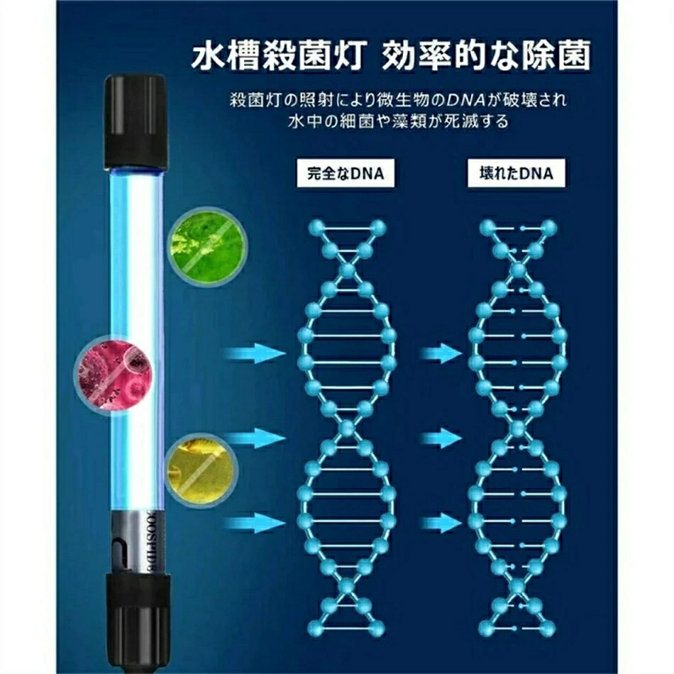 【高速で効果的な紫外線殺菌ランプ】水槽内の藻類、バクテリア、ウイルスを殺すのを助け、水質を浄化し、水が濁って水が緑色になるという問題を解決する。魚の生活環境をより健康にし、魚の病気を減らす