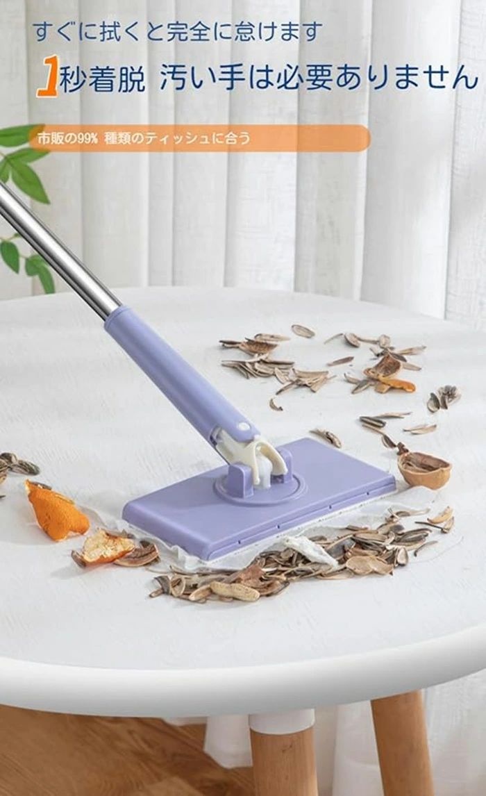 自動で雑巾を挟むモップ、ペーパータオル 日用品雑貨 文房具 手芸 通販 パープル+4枚両面布 ホワイト+4枚両面布 70cm 93cm