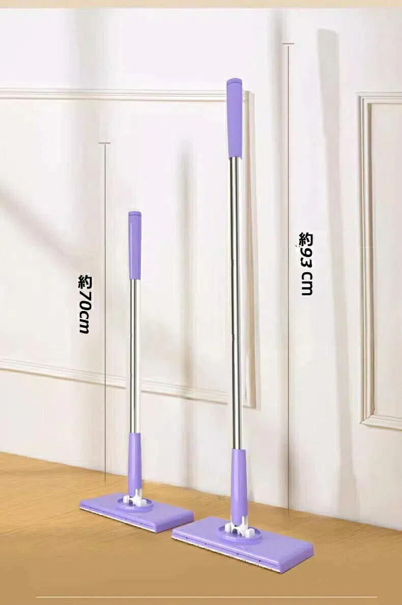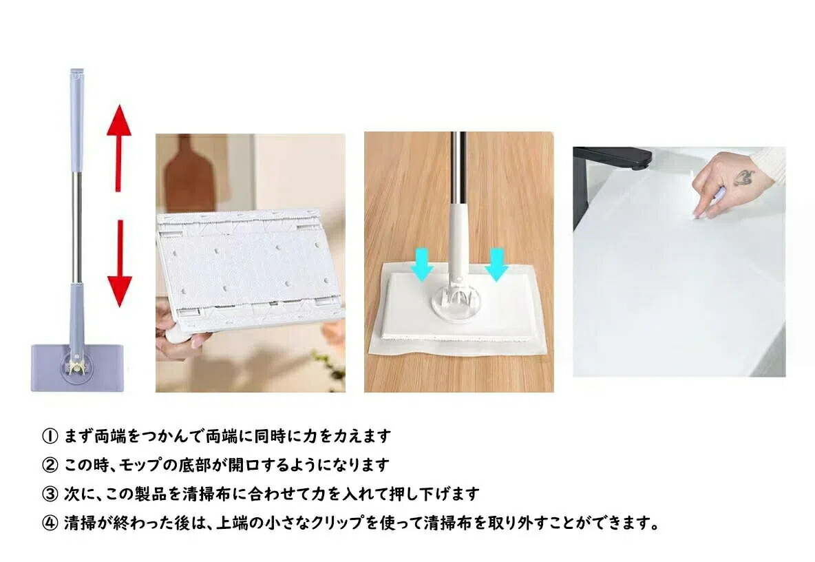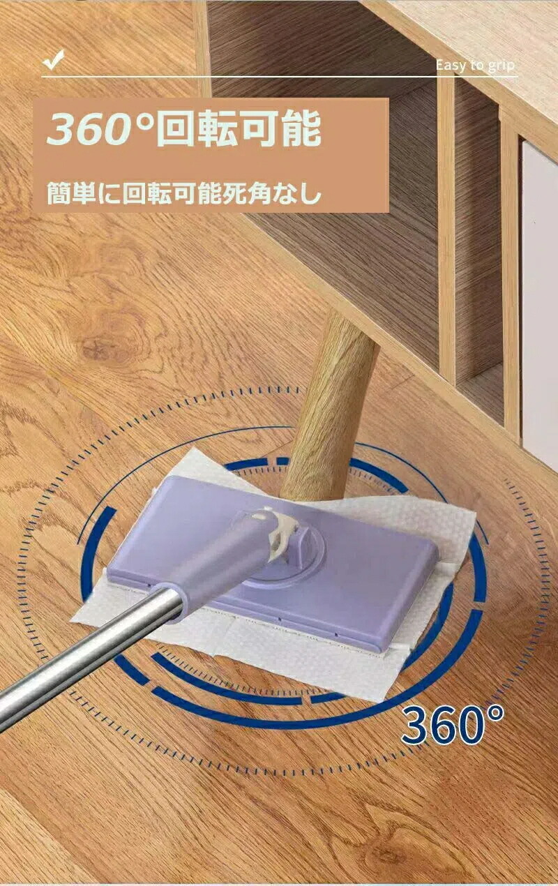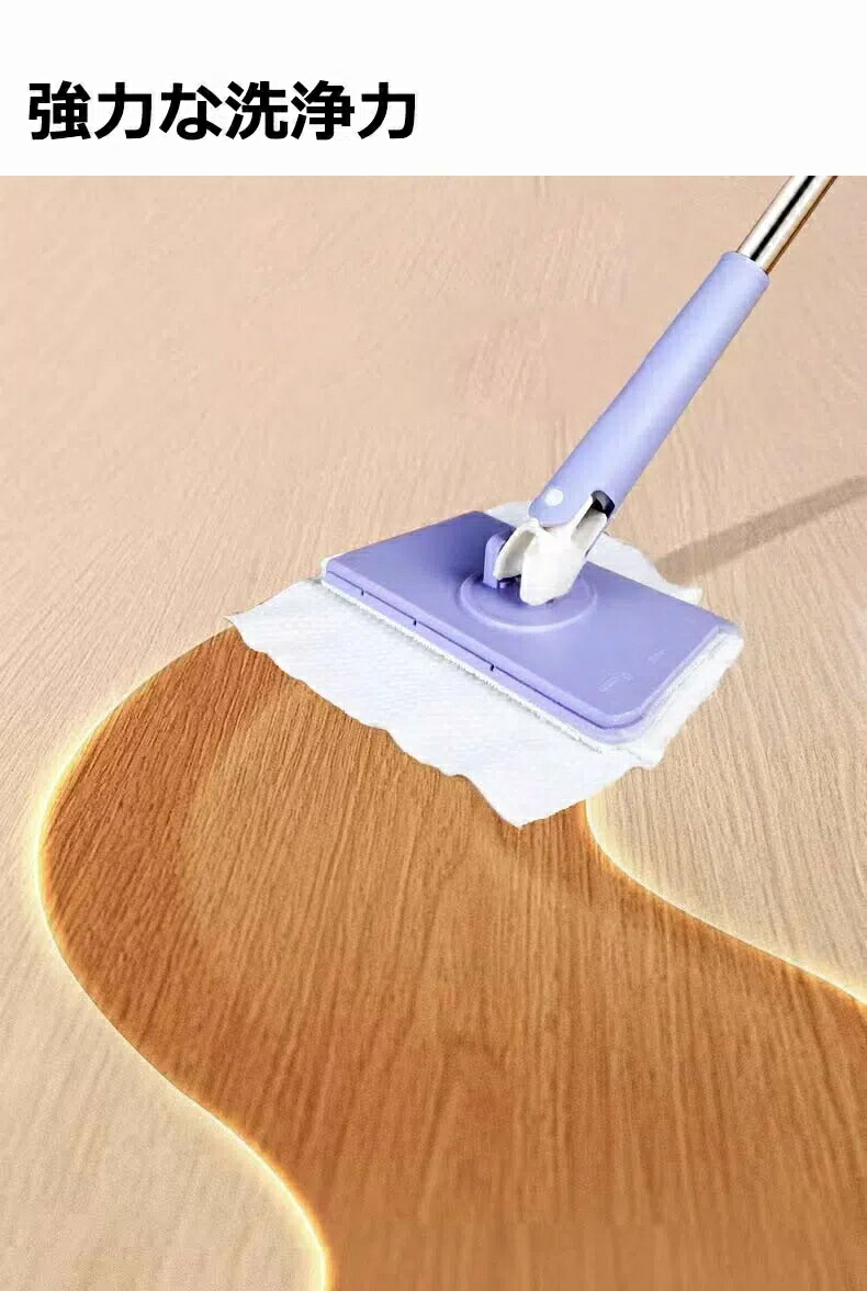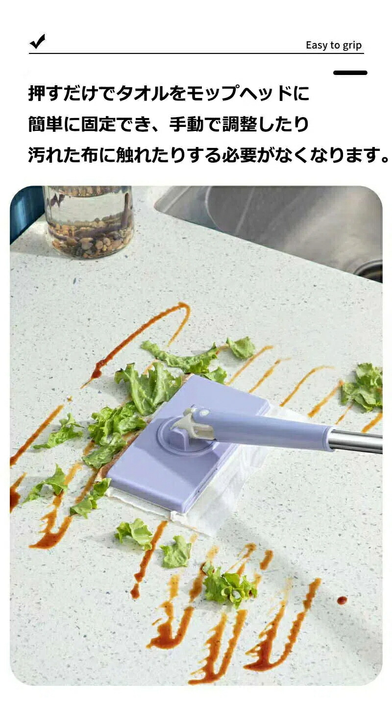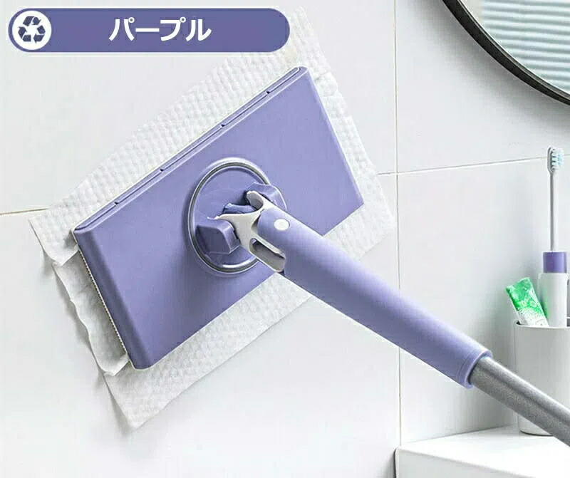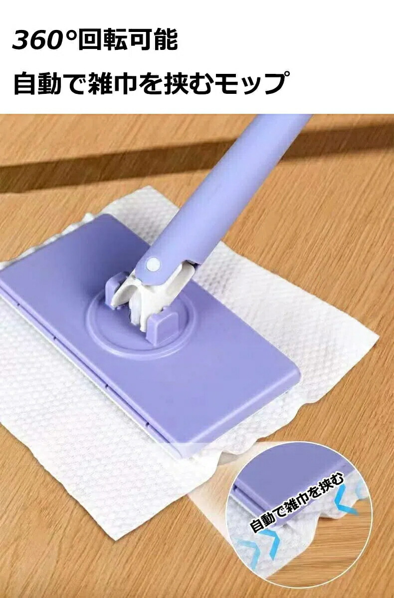 掃除布4枚付き 自動で雑巾を挟むモップ 日用品雑貨 文房具 手芸 人気 パープル ホワイト 70cm 93cm