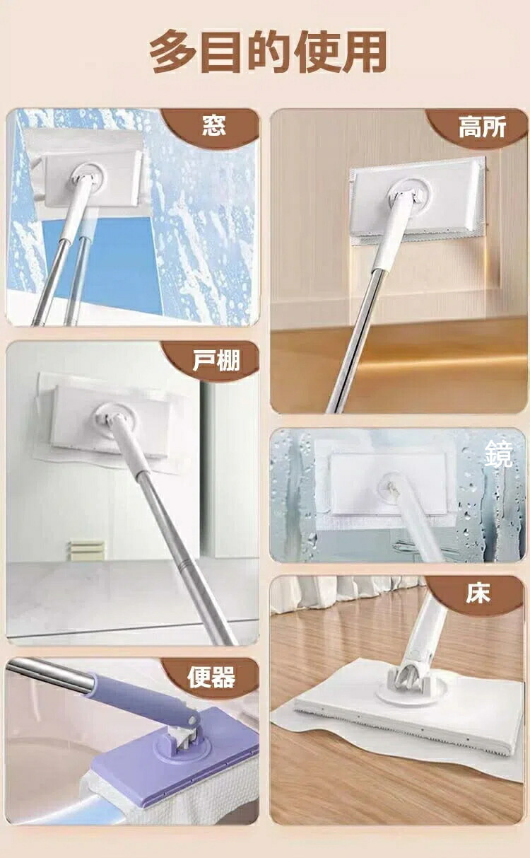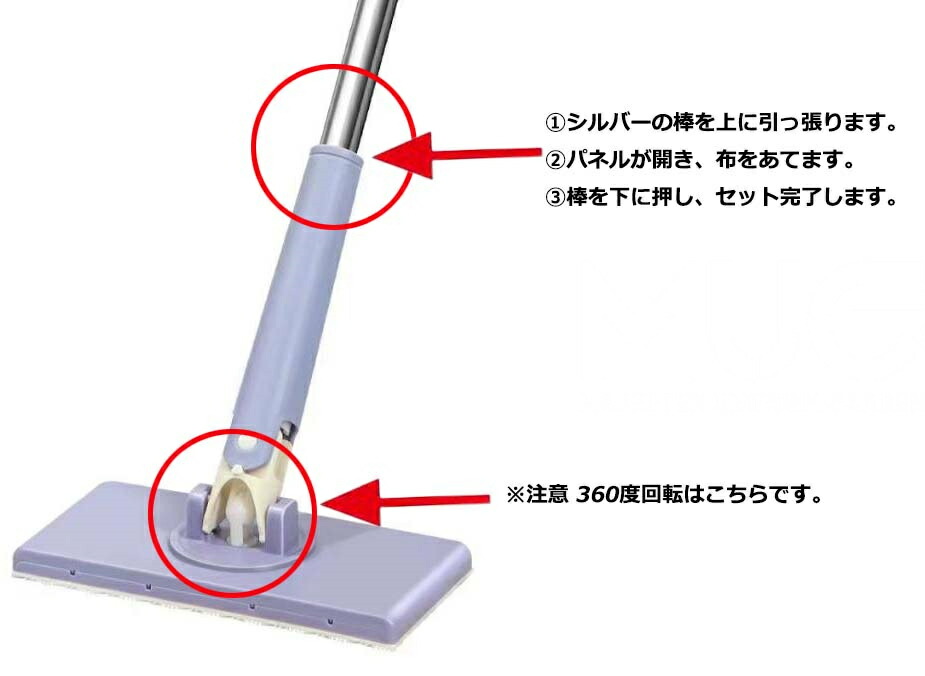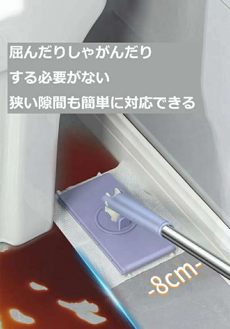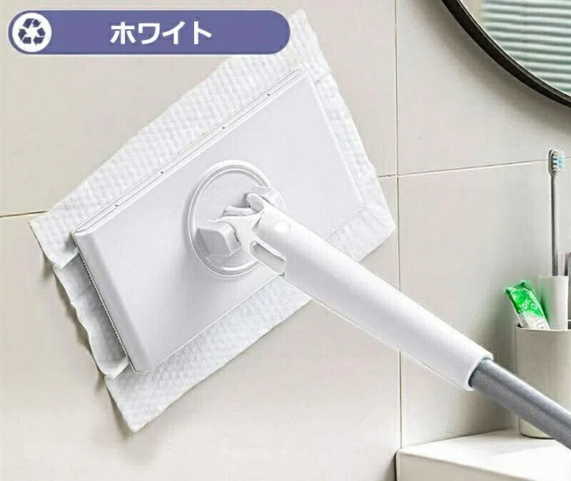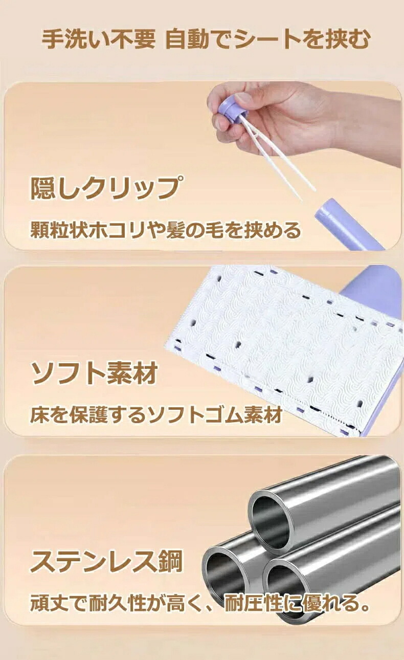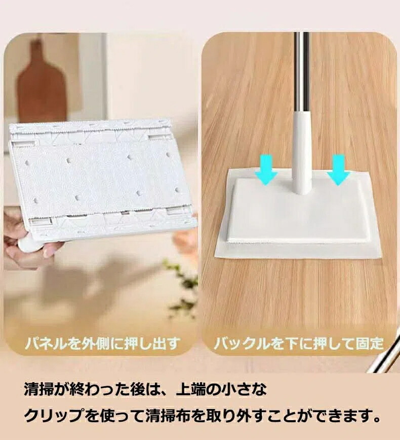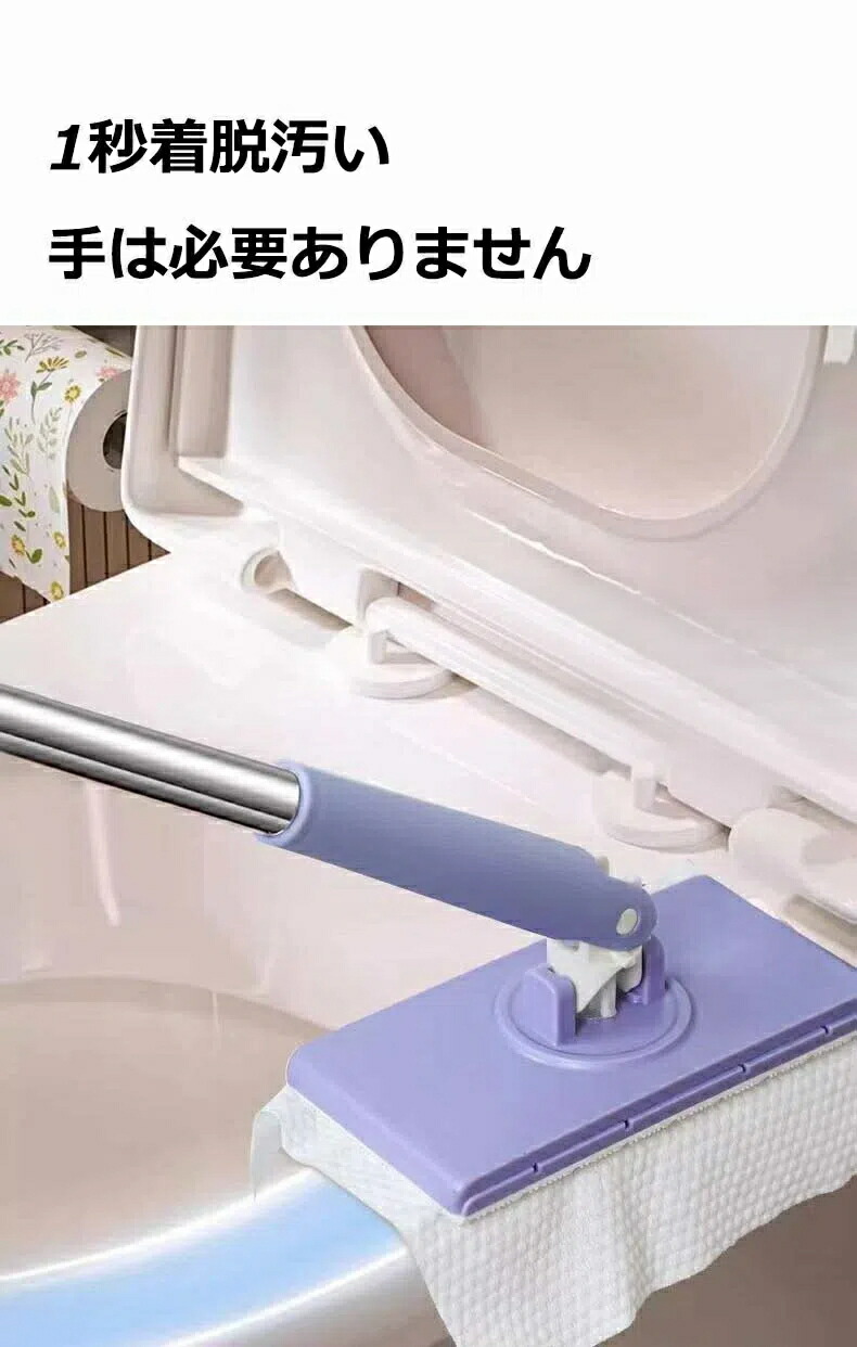 掃除布4枚付き 自動で雑巾を挟むモップ 日用品雑貨 文房具 手芸 人気 パープル ホワイト 70cm 93cm