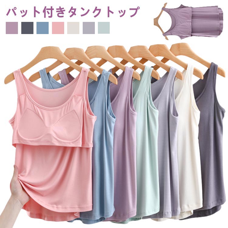 カップ付き タンクトップ 締め付けない レディース インナー 下着 ブラトップ 新登場! パーブル ダークグレー ブルー ピンク ベージュ マリンブルー グレー M L XL 2XL