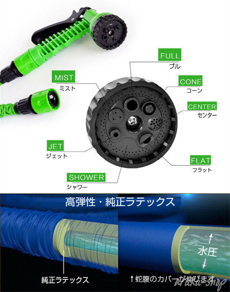 伸縮ホース ホース 37.5m 30m 2m~7.5m 5m~15m 7m~21m 10m~30m 12.5m~37.5m ブルー グリーン