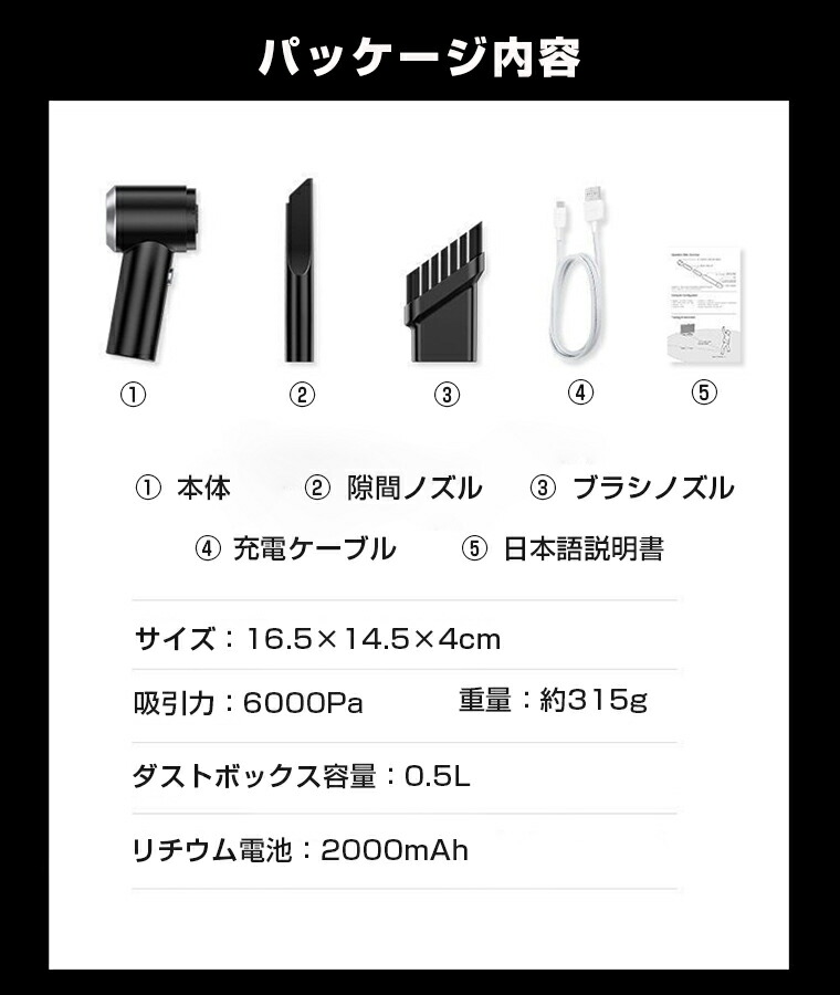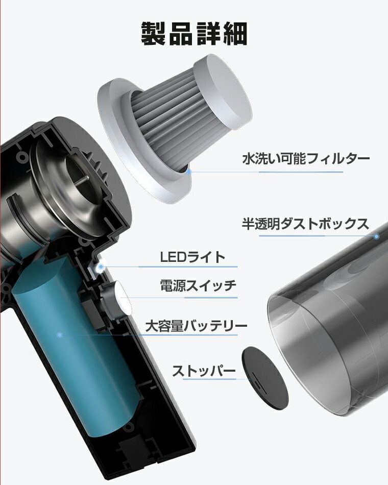 ハンディクリーナー コードレス ハンド ブラック ホワイト