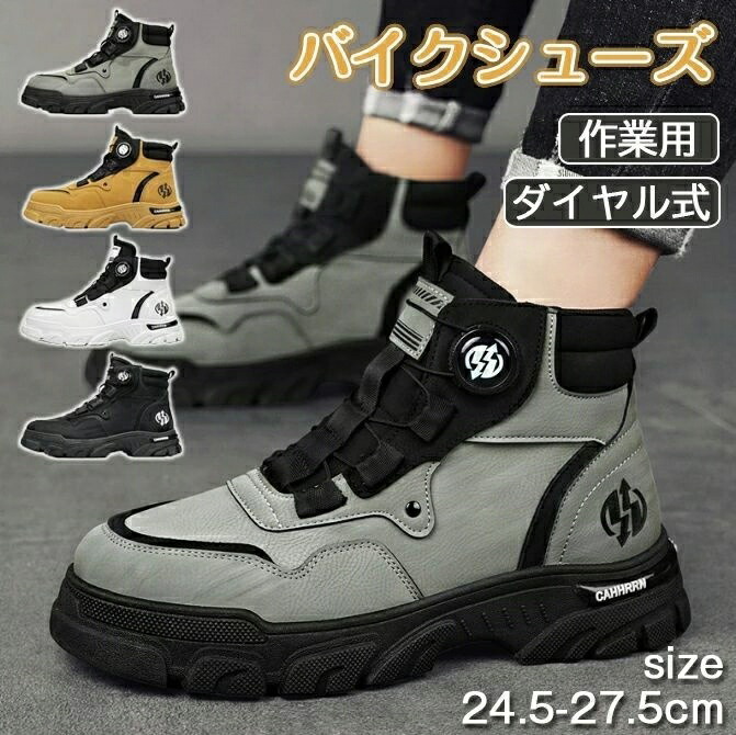 ウォーキングシューズ ハイキングシューズ ハイトップ ライディングシューズ バイクブーツ ダイヤル式 厚底 メンズ スニーカー