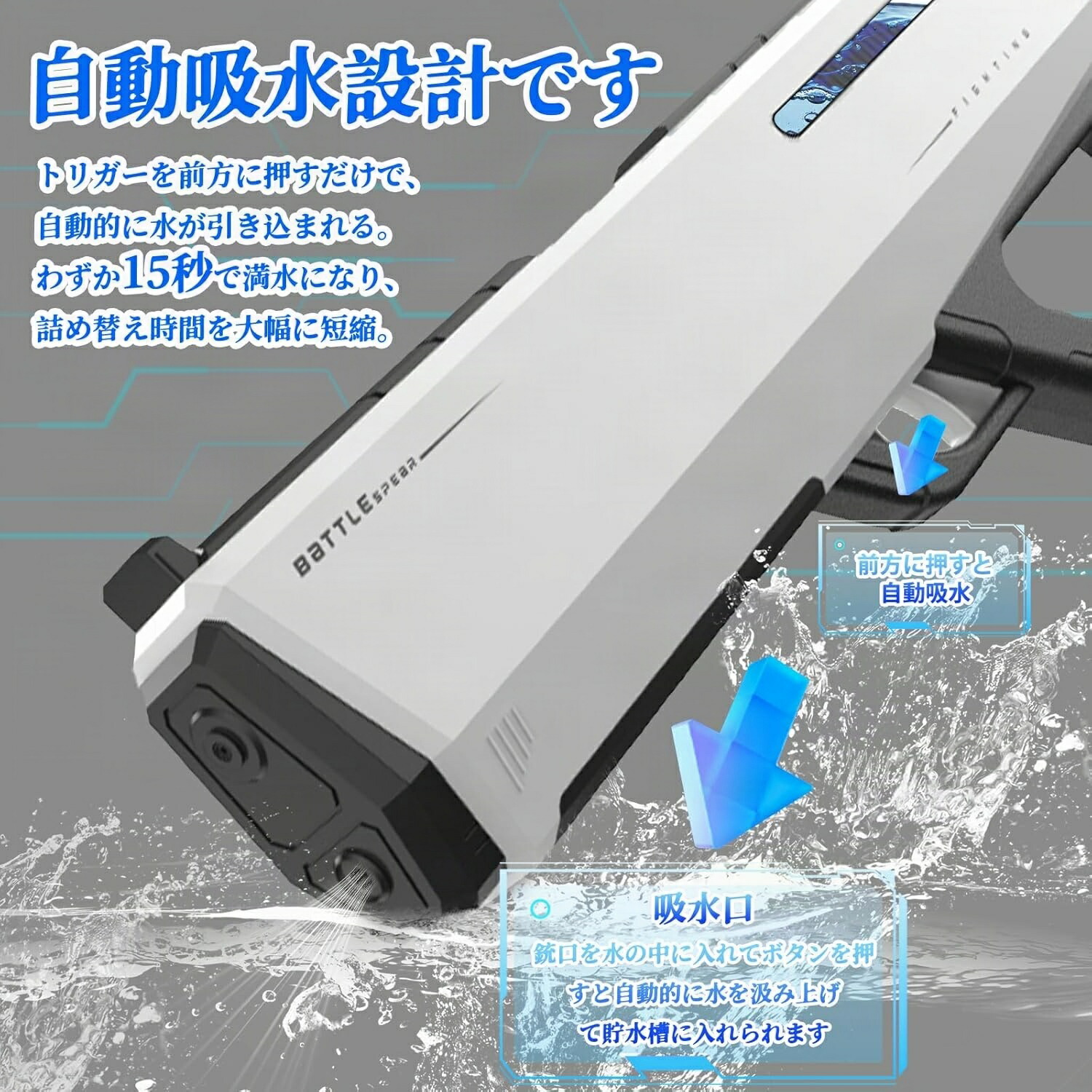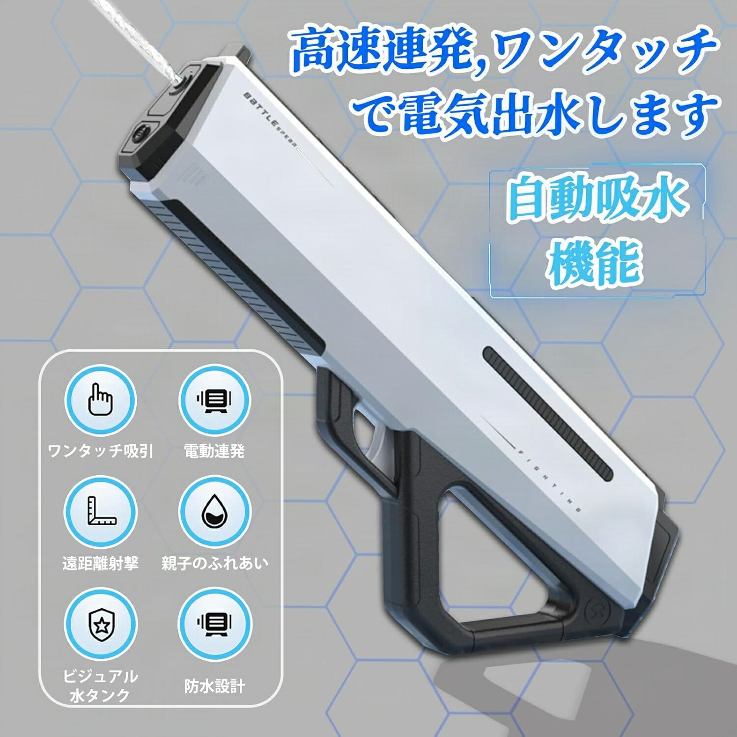 電動水鉄砲 ウォーターガン 連射式 防 おもちゃ ゲーム 新作 ホワイト ピンク ブルー