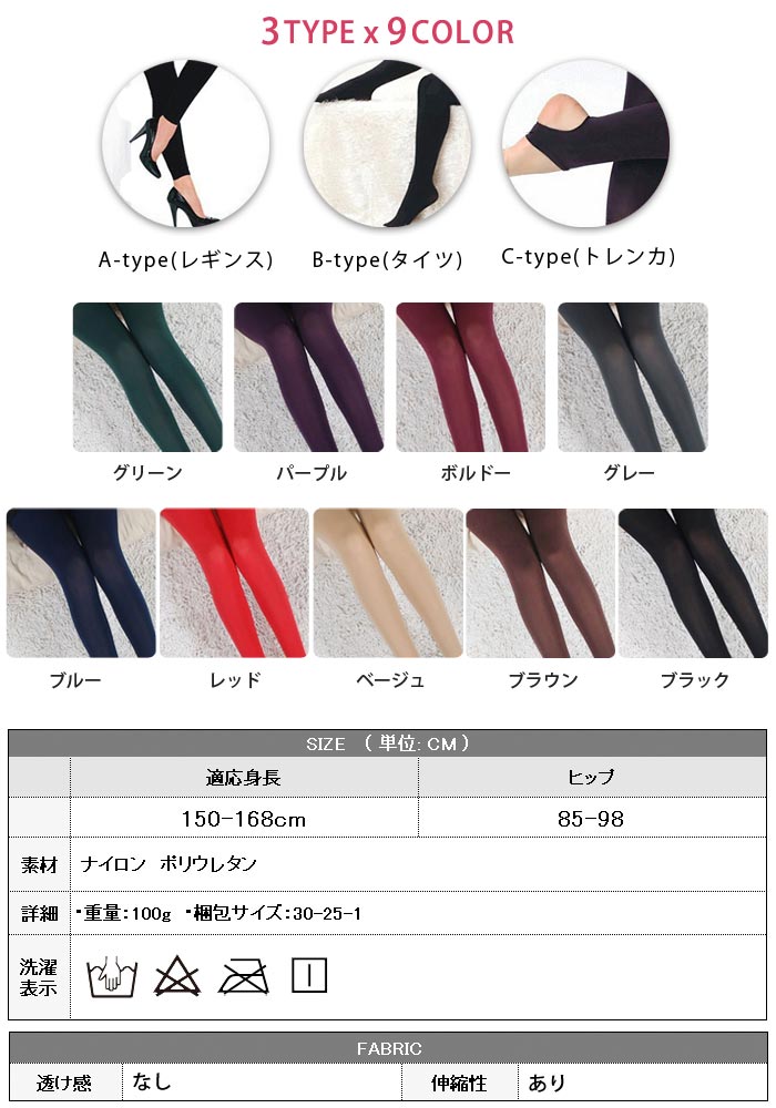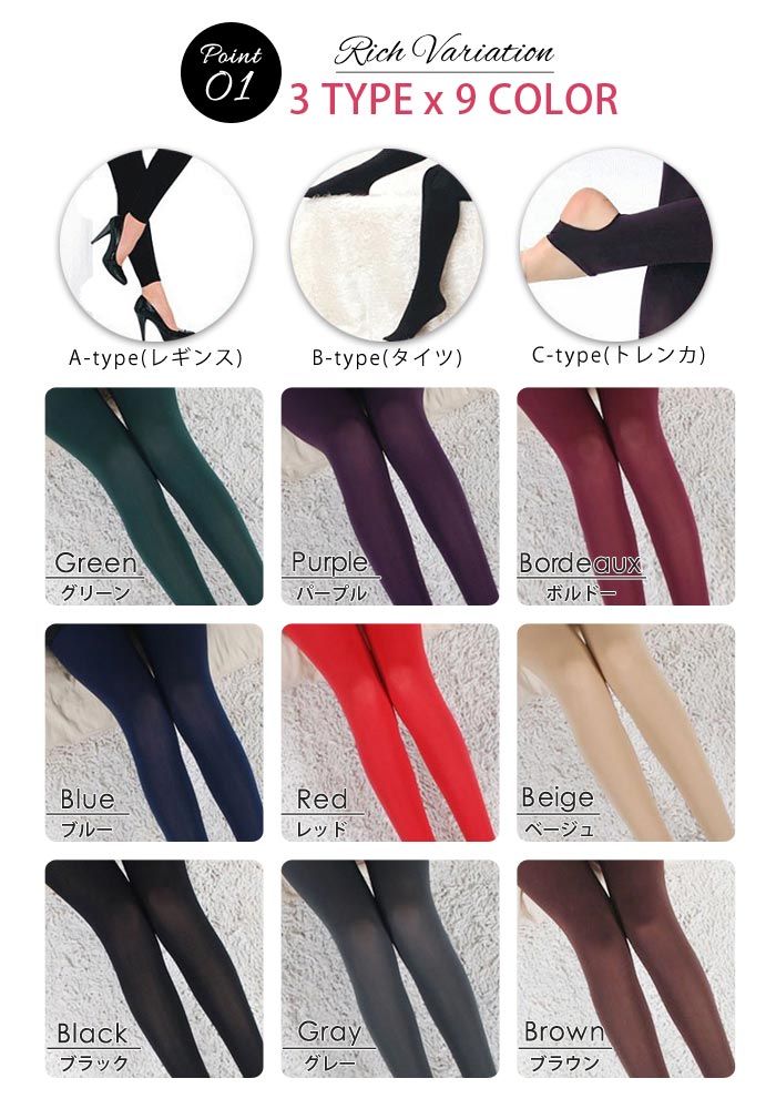 トレンカ レギンス タイツ ストッキン インナー 下着 ナイトウエア 新作 レギンス タイツ トレンカ ブラック グレー ベージュ ブラウン ボルドー レッド パープル ブルー グリーン