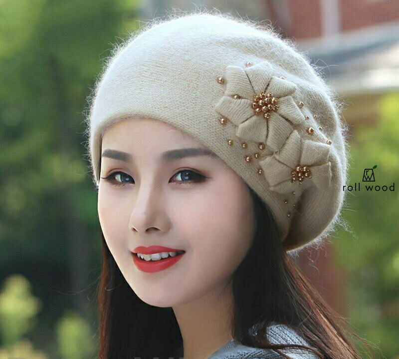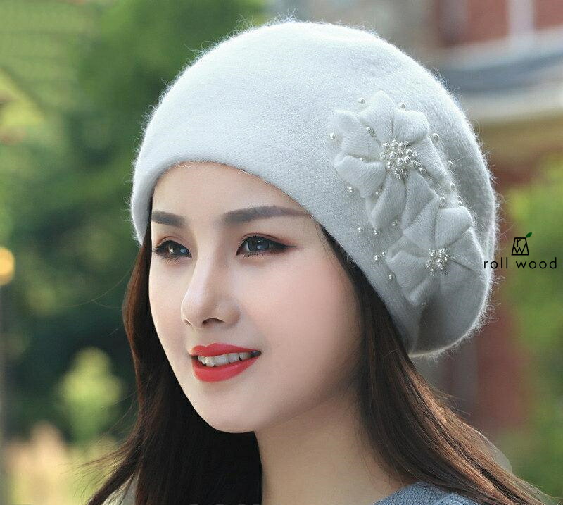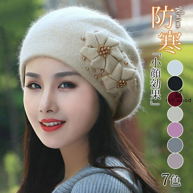 帽子 レディース ベレー帽 秋 冬 ニット 花 キャップ 小顔効果 防寒対策 ふわふわ 暖かい 形崩れしない 締め付けゼロ ハット プレゼント ギフト クリスマス 母の日