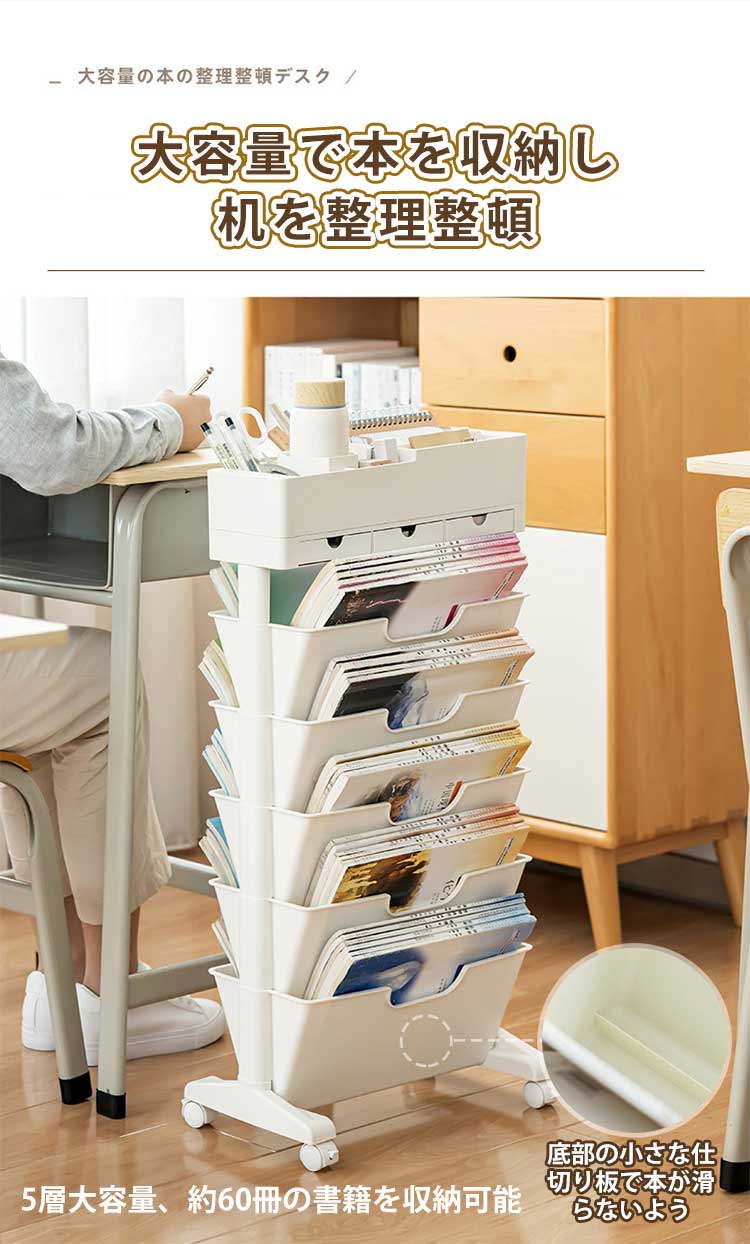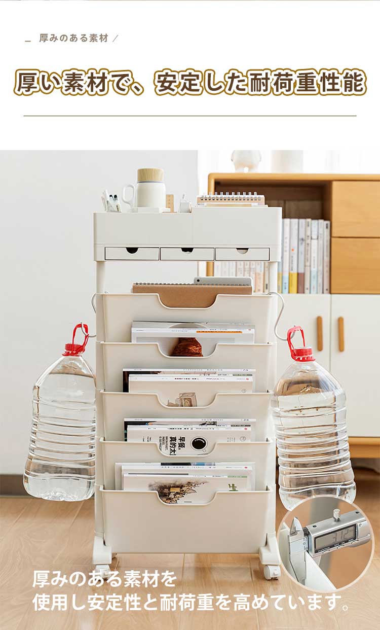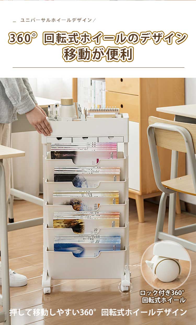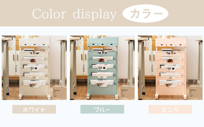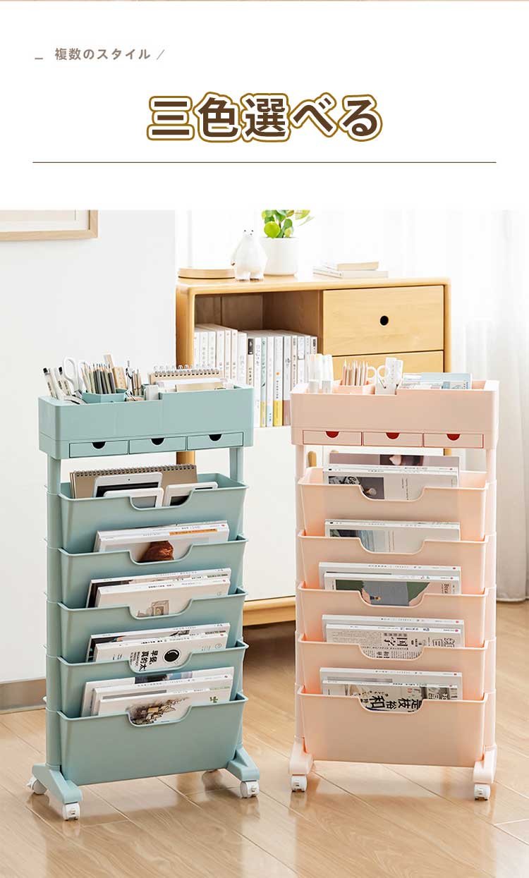 書物収納ワゴン 本棚 6段PP素材 収 ホワイト ブルー ピンク