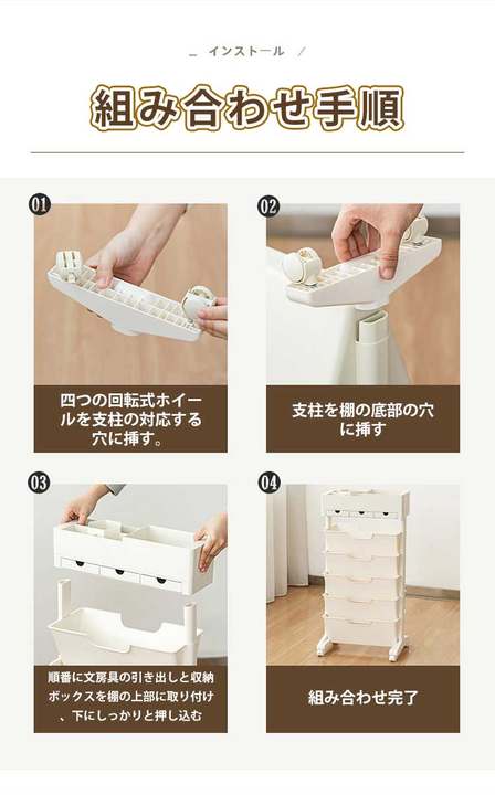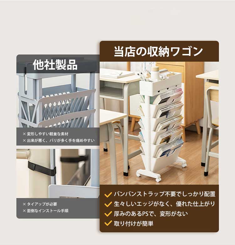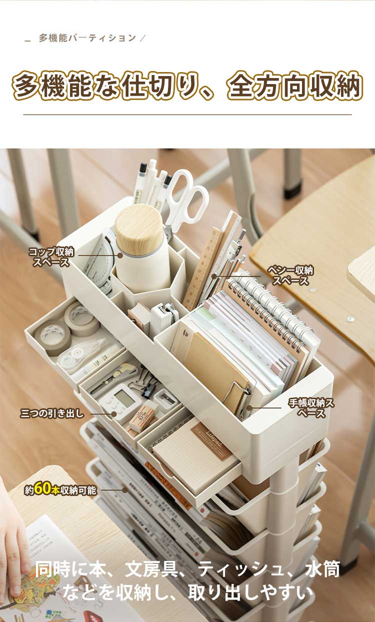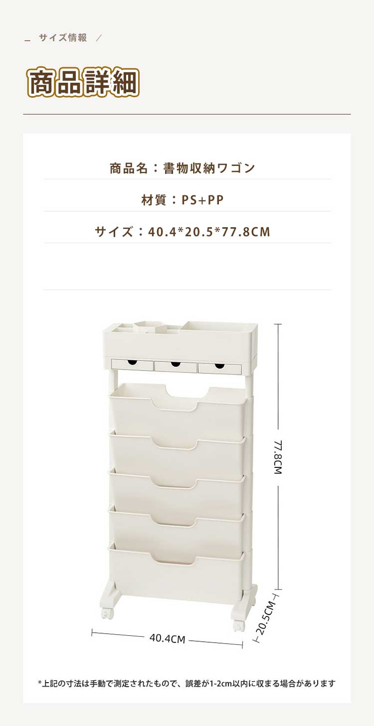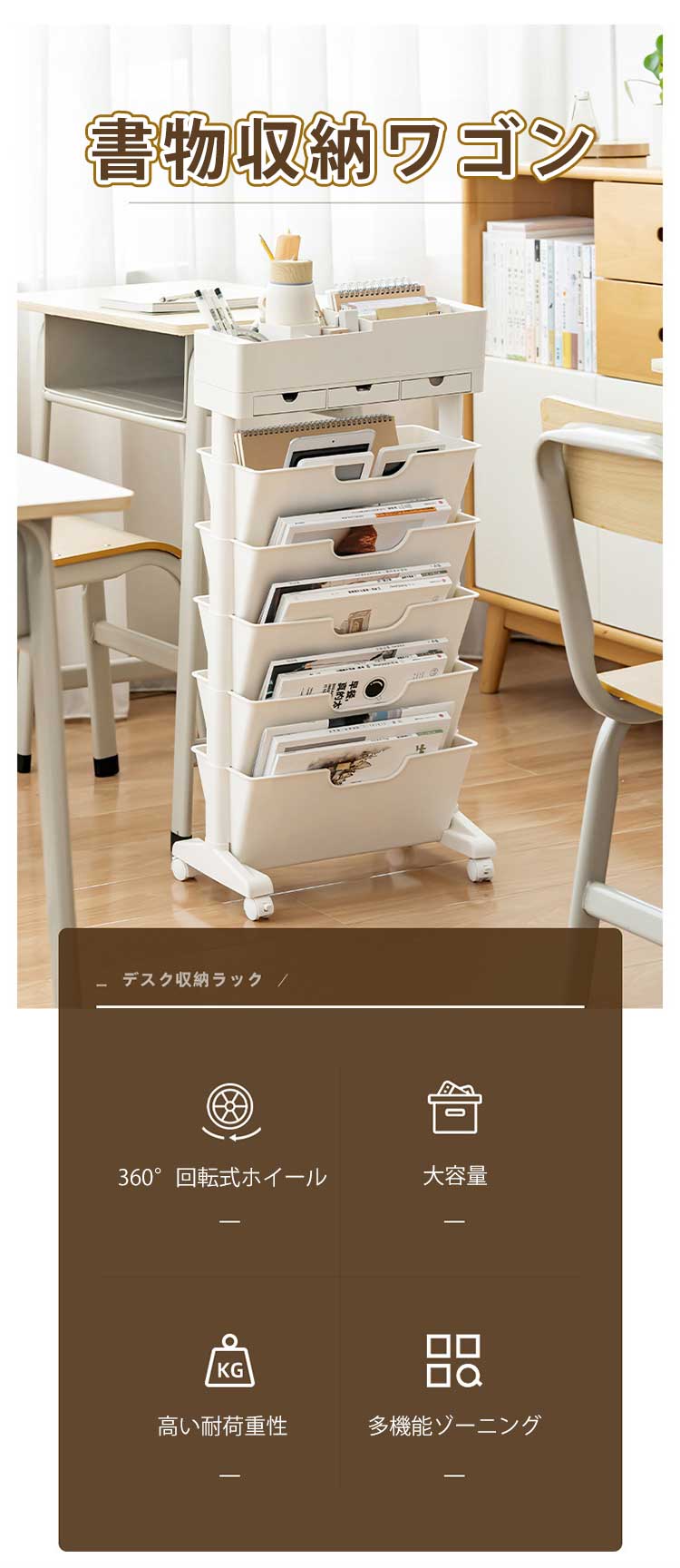 書物収納ワゴン 本棚 6段PP素材 収 ホワイト ブルー ピンク