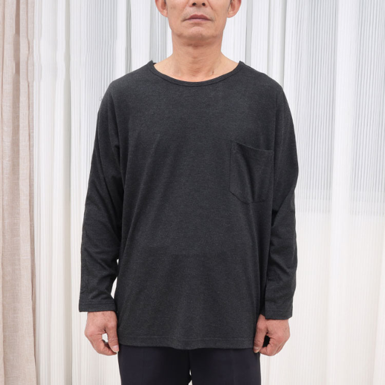 長袖 介護用品 ロンT 高齢者 術後ウ ブラック半袖 グレー半袖 ブルー半袖 ブラック長袖 グレー長袖 ブルー長袖 M L XL 2XL