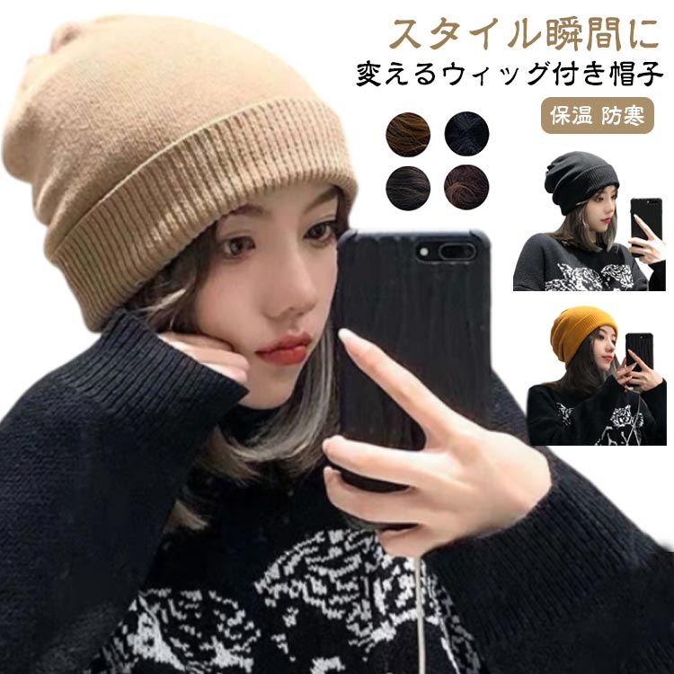 冬 ウィッグ帽子一体型 秋 帽子 ニッ バッグ 小物 ブランド雑貨 超目玉商品 ホワイト帽子 ブラック帽子 ライトグレー帽子 ダークグレー帽子 ベージュ帽子 オレンジ帽子 自然黒(髪の色) ダークブラウン(髪の色) ライトブラウン(髪の色) ブラックブラウン(髪の色)
