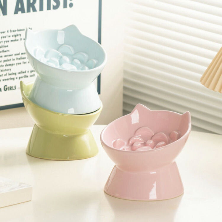 猫 食器 プレゼント 皿 耳付き フー ピンク ブルー グリーン イエロー