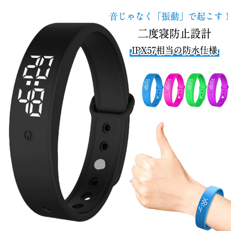 時計 二度寝防止 目覚まし時計 スマートウォッチ 強力 腕時計 軽量 ウォッチ スポーツウォッチ タイマー バンド デジタル時計 アラーム 振動機能付き 充電式 寝坊防止 めざまし時計 聴 振動