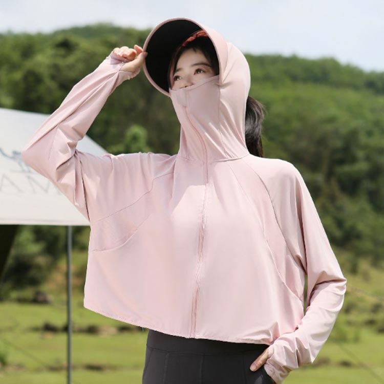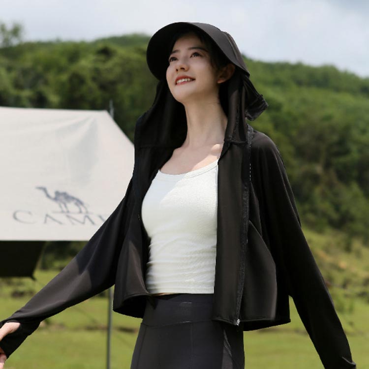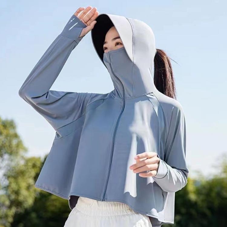 指穴付きのデザインで手の甲までカバーし、首元までしっかり保護することができるため、日焼け対策にも効果的です。