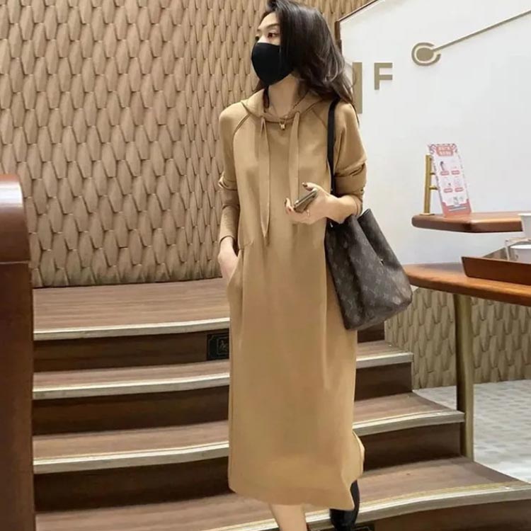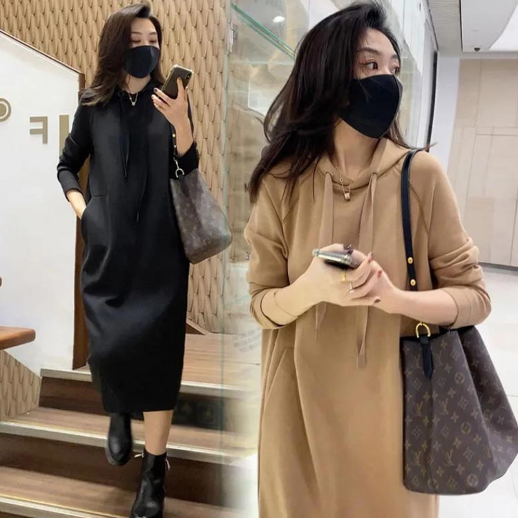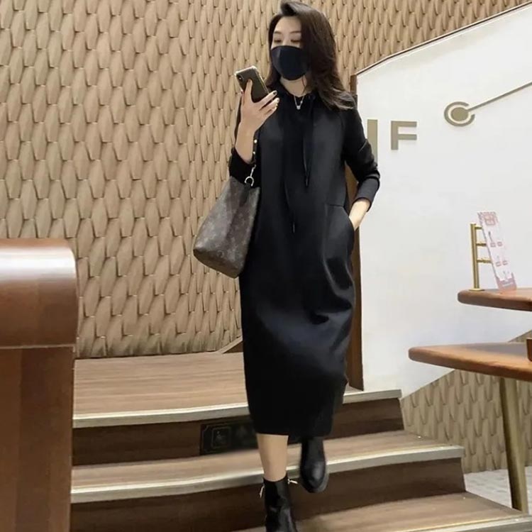 ロング丈 ワンピース パーカーワンピー レディースファッション 超目玉商品 ブラック ベージュ M L XL 2XL 3XL