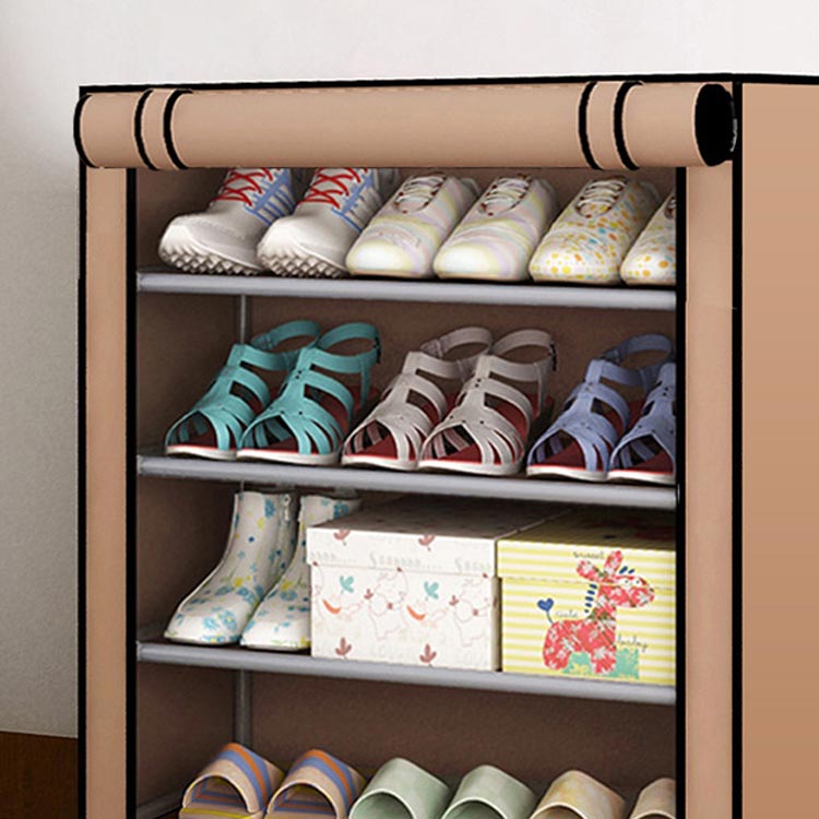 カバー付き 10段 シューズラック シ グレー レッド コーヒー