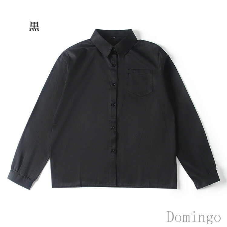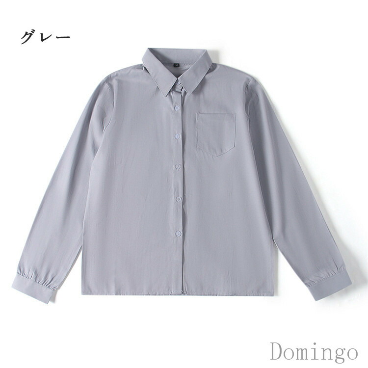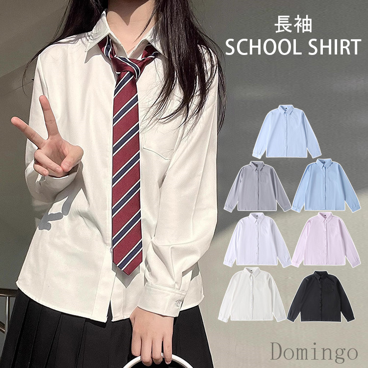 スクール シャツ ワイシャツ 制服 長 白 黒 アイボリー グレー ブルー ライトブルー ピンク XS S M L XL 2XL 3XL 4XL