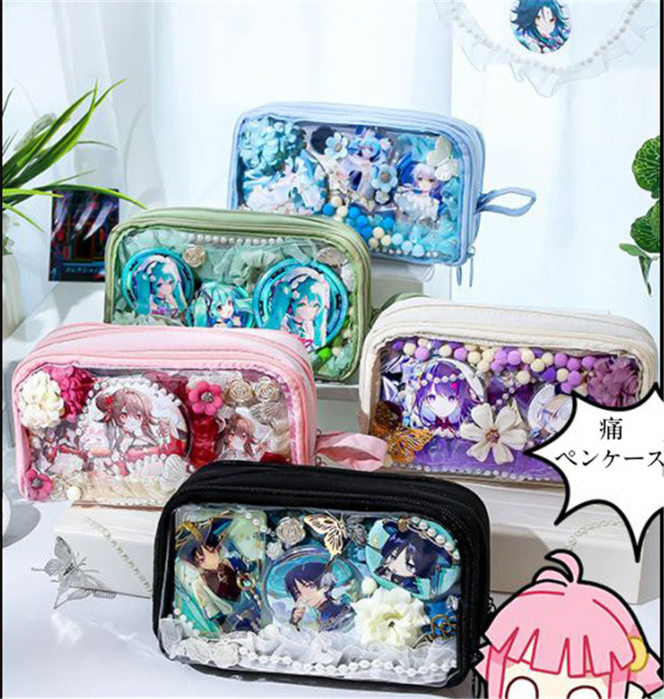 推し 筆箱 ペンケース 大容量 多機能 小学生 中学生 高校生 子供 大学生 痛ペンケース 缶バッチ入れ 両面透明 痛バ 推し活 推し筆箱 痛 バ 痛バッグ かわいい 学生 通 ツールペンケース