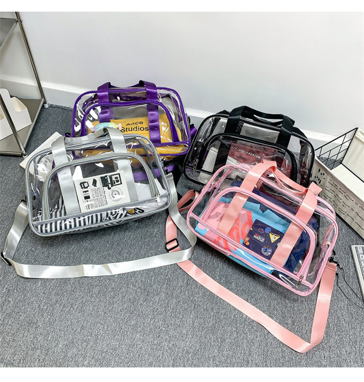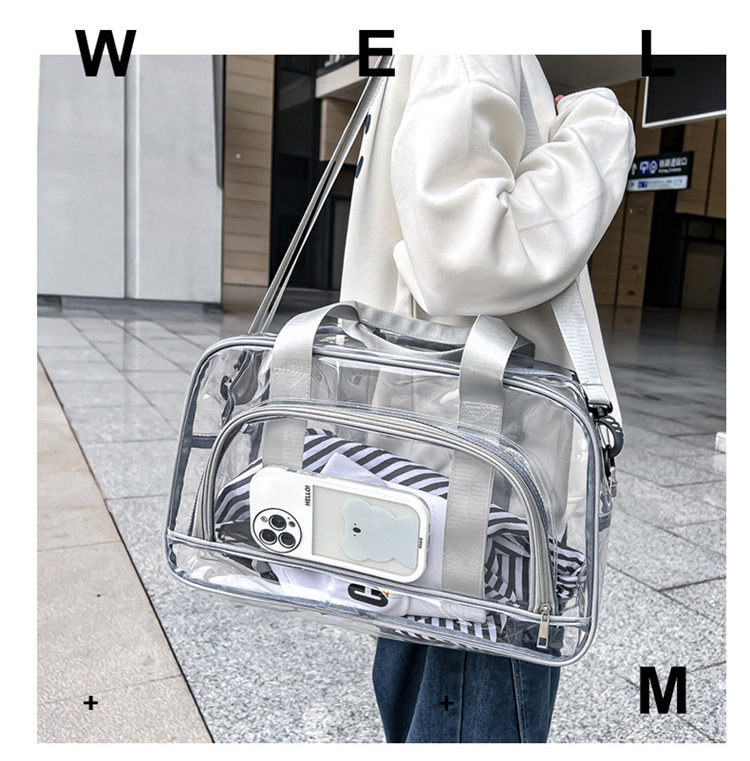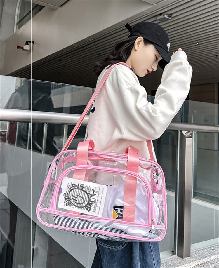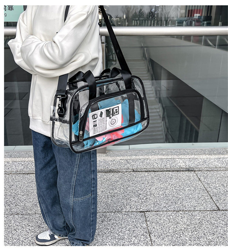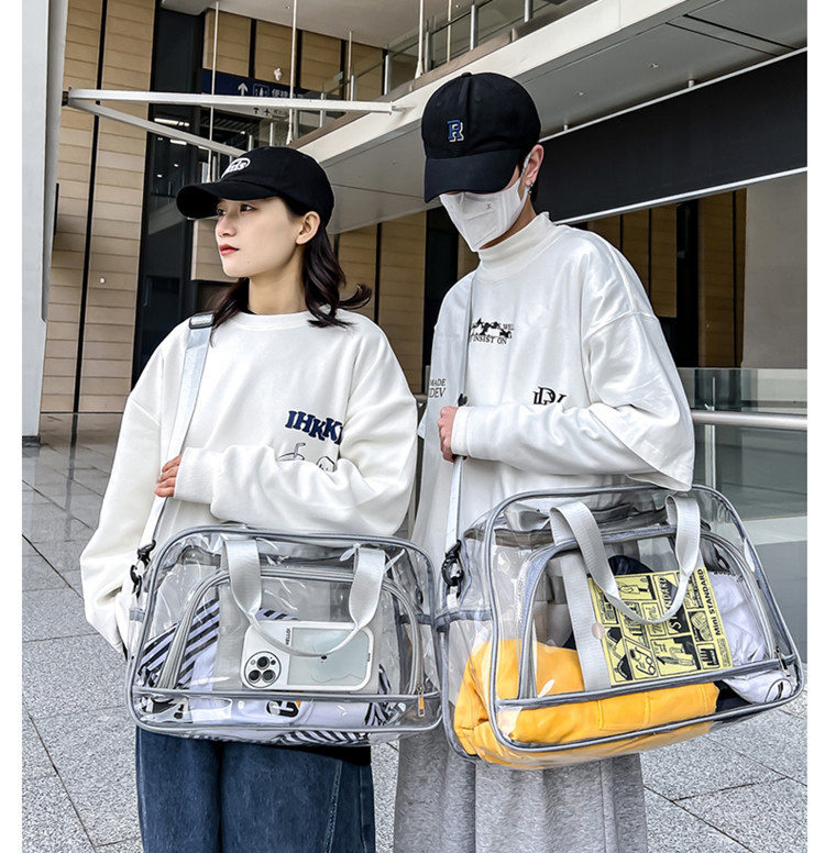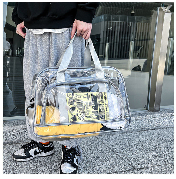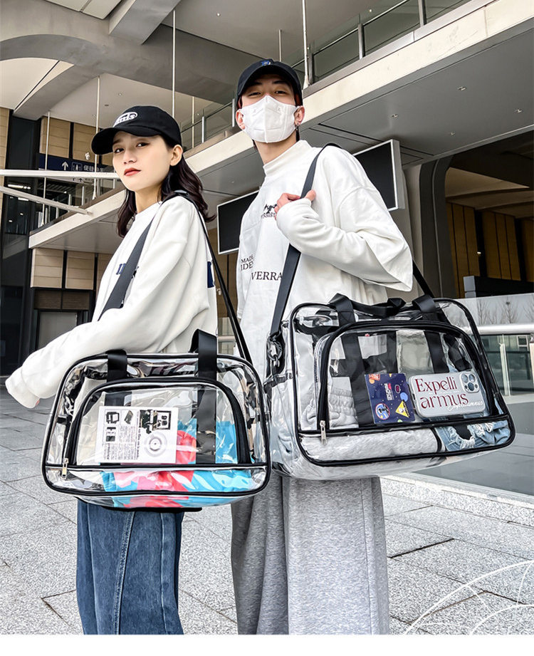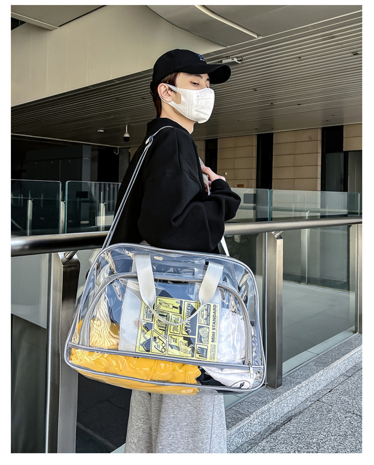 クリアバッグ ボストンバッグ バッグ カバン ボストン 透明 透明バッグ ビニールバッグ クリア ショルダー 男女兼用 旅行 修学旅行 短期旅行 旅行バッグ 旅行カバン 卒業旅行 1泊 2泊 ス 出張