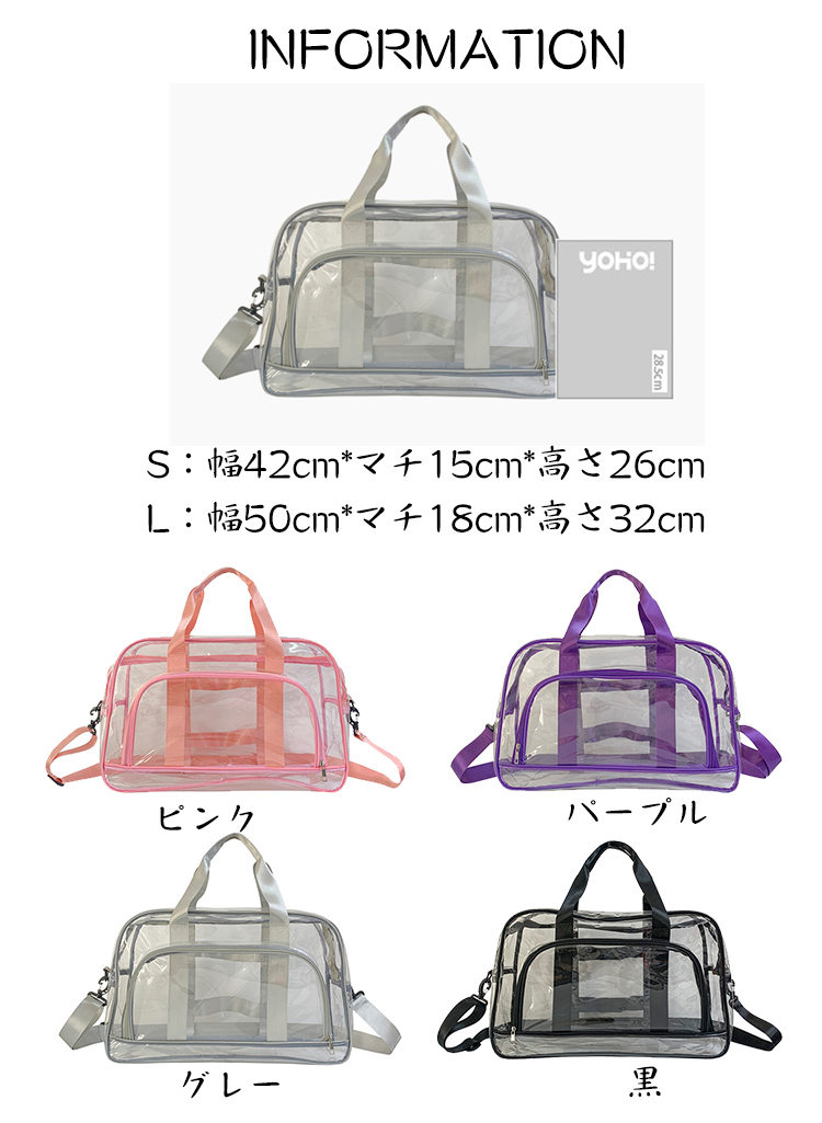 クリアバッグ ボストンバッグ バッグ バッグ 男女兼用バッグ ボストンバッグ 豊富な品揃え S L 黒 グレー ピンク パープル