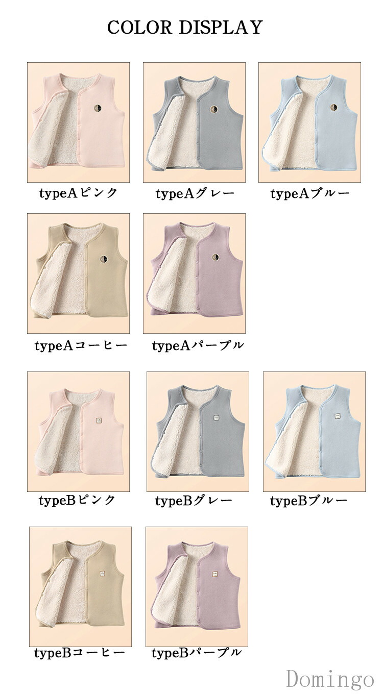 裏ボアベスト 裏起毛 キッズ 子供 女 キッズ トップス ベスト 続々登場 typeAピンク typeAグレー typeAブルー typeAコーヒー typeAパープル typeBピンク typeBグレー typeBブルー typeBコーヒー typeBパープル 110cm 120cm 130cm 140cm 150cm 160cm 170cm