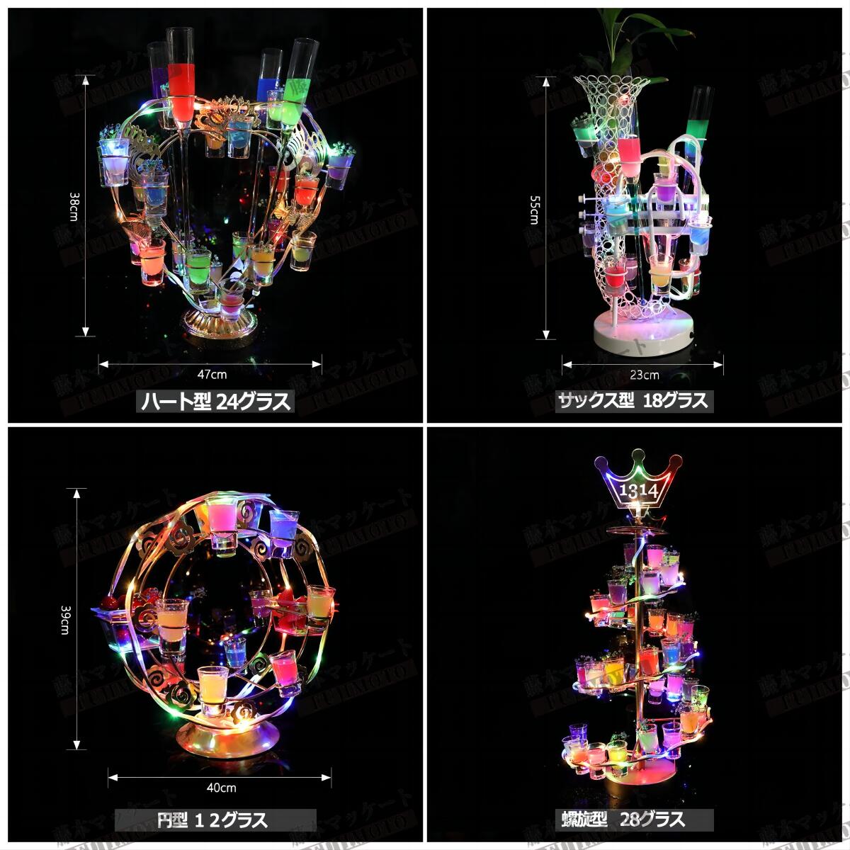 LED酒グラス棚幻の船 LED酒ボトル 船型 観覧車 ハード VIP ギター 五芒星 V字型 螺旋 サックス 円型 LOVE型 蝶 クラブ グラス付き グラスなし