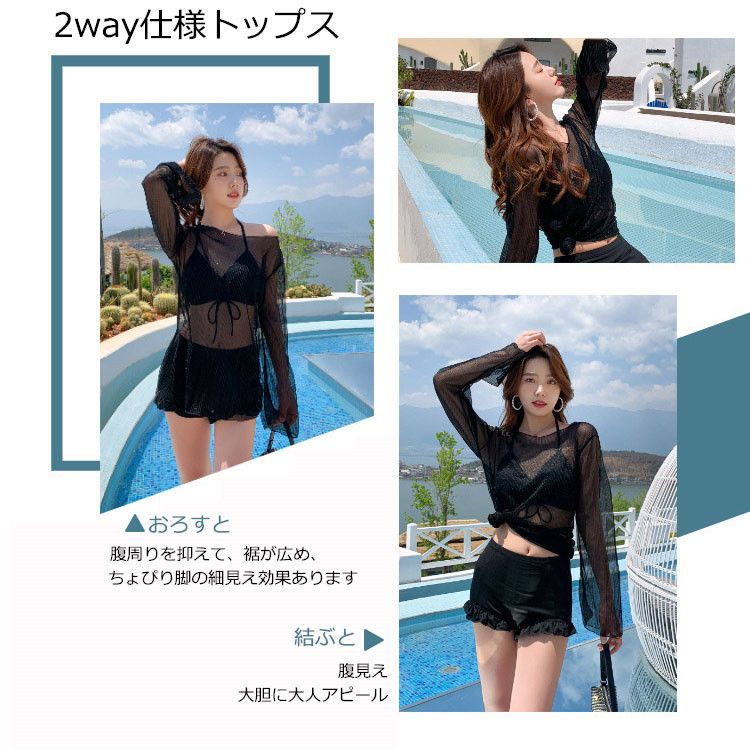 THOM WILLS 3点セット 露出 水着 新作 ピンク ブルー イエロー ブラウン ブラック レッド ホワイト+ブラック パープル ピンク+イエロー S M L XL