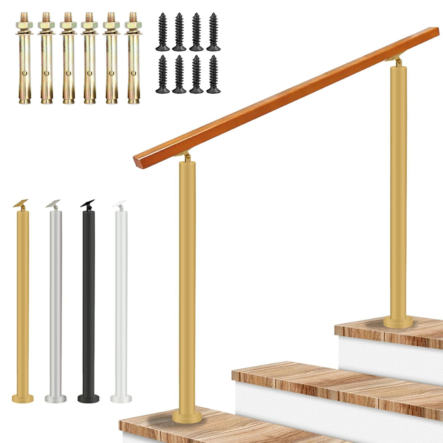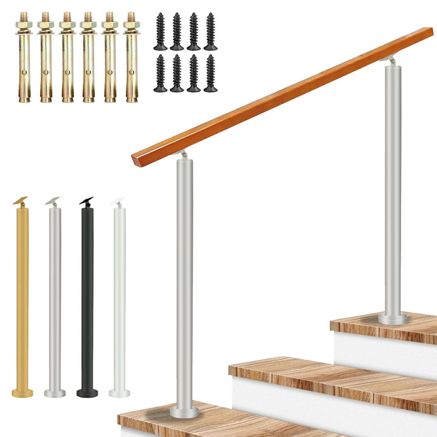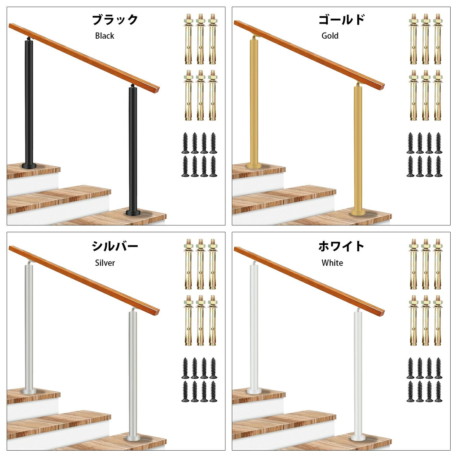 手すり 屋外 玄関手すり 無垢材の手摺 ブラック シルバー ゴールド ホワイト 手すりの長さ:60cm 手すりの長さ:80cm 手すりの長さ:100cm 手すりの長さ:120cm 手すりの長さ:140cm