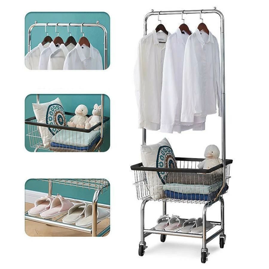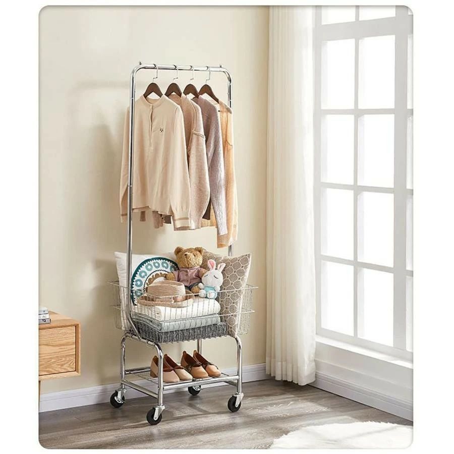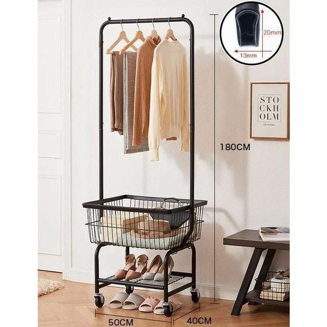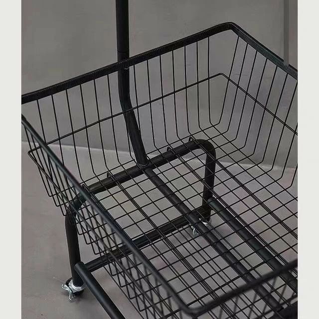 ガーメントラック バスケット付き 衣料 ブラック シルバー