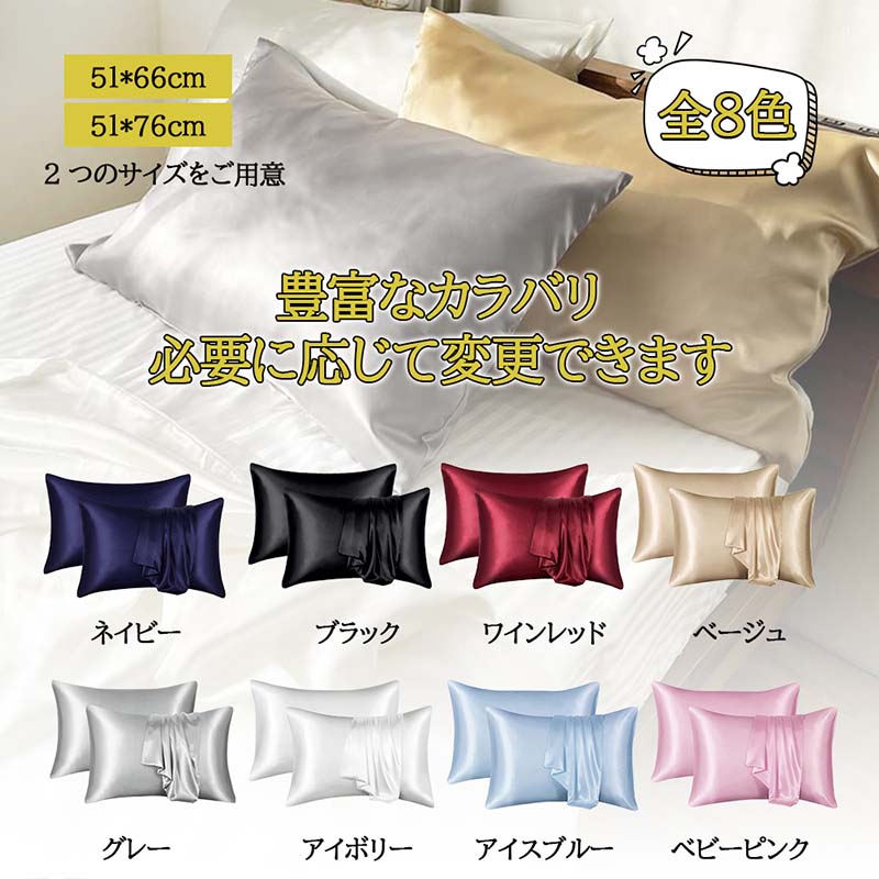 枕カバー 封筒 洗える 可愛い 冷感 インテリア 寝具 収納 新作 アイスブルー アイボリー グレー ネイビー ブラック ベビーピンク ベージュ ワインレッド 51*66cm*2 51*76cm*2