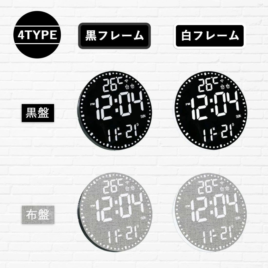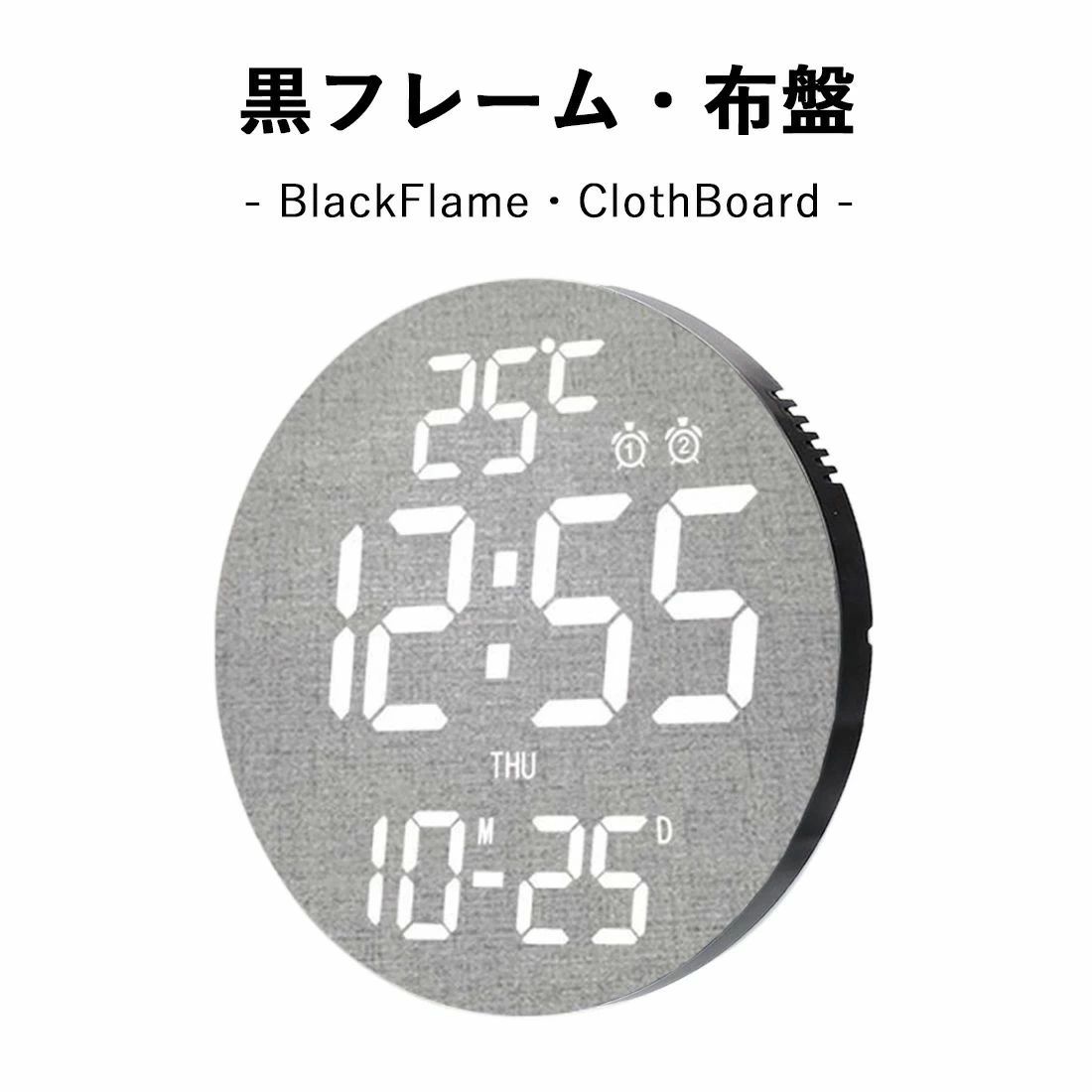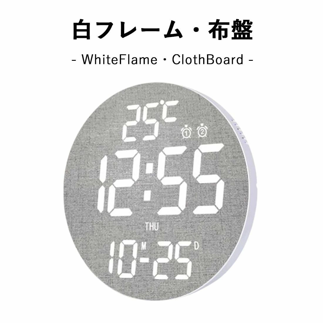 電波時計 壁掛け デジタル 壁掛け時計 ブラックフレーム・ブラック盤 白フレーム・ブラック盤 ブラックフレーム・布盤 白フレーム・布盤